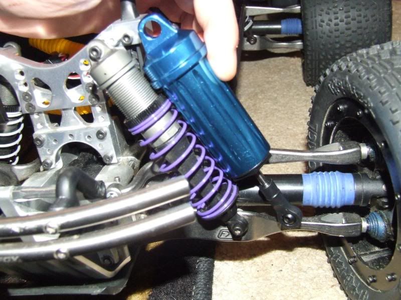 the rears are too long for my liking, about 10mm longer than big bores, I like level suspension arms, I had to use the Integy(yeah) adjustable towers to get the right height to handle well where i drive. Good thing is for big air contests with the nitro guys I just unscrew the 4 screws and slide the tower down and have massive suspension travel. But Id go for the fronts if I had it to do over. http://i278.photobucket.com/albums/k.../8ight3007.jpg |