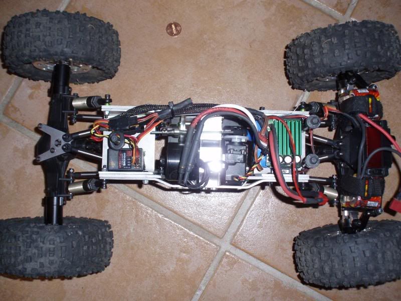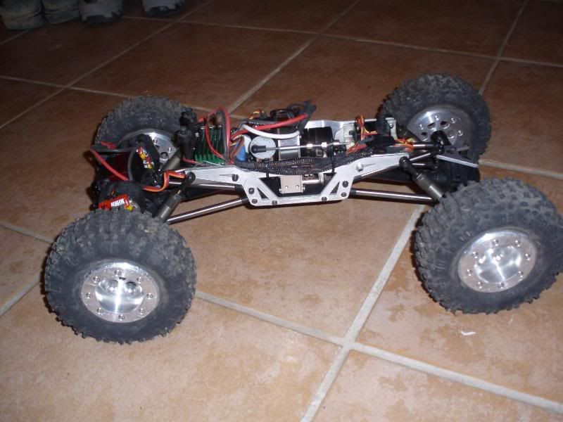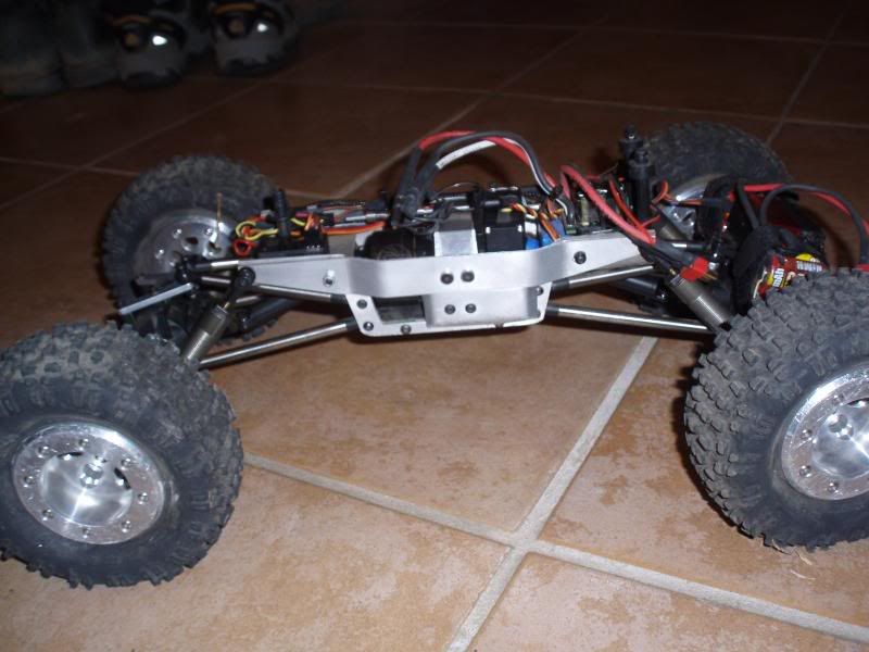 Tons of great information.. GM360 – DAM SIR.. Thank you!! That was a huge help.. I spent a good part the weekend (when I wasn’t playing dad) doing research, LOTS of fricken research. (I'm now on two other forums) and I joined the So-Cal Rock basher club.. http://socalrcrc.org and had to add another folder in my fav just for Rock Crawling (it’s a whole world by itself).. Who new (?) Anyway, every time I would added up the numbers (parts) on all of the different builds I'm entertaining, I kept coming up to the same dam number (over 2K), over 2k, OVER 2K… AAAAaaaHHHHhhaaaa.. So I looked around and realized I have too many toys and It’s time for some to go.. So I posted up my trade offer (808 Pro E RTR) on a few site for a killer Rock Crawler (TRADE) IE one of my 2k+ builds for one of your 2k Rock crawlers. So far I’ve got one strong yes and one I'm waiting for pictures on anther. If you have the time please review what I have up on the table now / will be looking at later this week. I really value ALL of your opinions. Or if you have a bitchen RC that you would like to offer up as a trade for something I’ve got let me know (?) Thank you all for your time!.. Shaun. Here is the replay I received” Hmmmmmm Well lets see. I have a custom state of the art 2.2 crawler you might be interested in. Axial base, although all thats left of it is the axle housings Blackjack chassis, with custom gusset and skid plate RC4WD R2D trans with Rocksmith teflon shift bushings for dig Holmes hobbies Crawler sport brushless outrunner, 1000kv RCP Alum c's RCP alum knuckles Rocksmith titanium lockers front and rear Rocksmith titanium links all around, lowers, uppers and steer, with axial rod ends RCP rear alum lockouts RCP SS one peice axles for rear MSD Six shooter billet beadlocks with Proline badlands and NWtractech memory foams Stock axial wheels cut and narrowed with new Losi claws and foams TCS Rear upper 4 link plate, alum TCS front upper 4 link plate delrin TCS front 3 link bracket, alum custom radio and electronice plates Jato drivelines TCS dig servo mount JR 8711 servo for steer Hi-tech 645mg for dig CC external bec w/programmer module Losi crawler shocks built as droop setup with internal springs 35w fr,40w rr.50w lr Plus tons of stock parts, shock, links, springs and more stuff than I can post. Plus the stock chassis, extra tires and on and on. This is a national level crawler right from the get go. It is used and scratched up a bit, but I am a machinist and all the inner working are immaculent. Would even include 2 containers of my patent pending GearJelly with the deal. My build thread can be found here. http://www.rccrawler.com/forum/showt...inest+insanity Let me know what ya think......... |