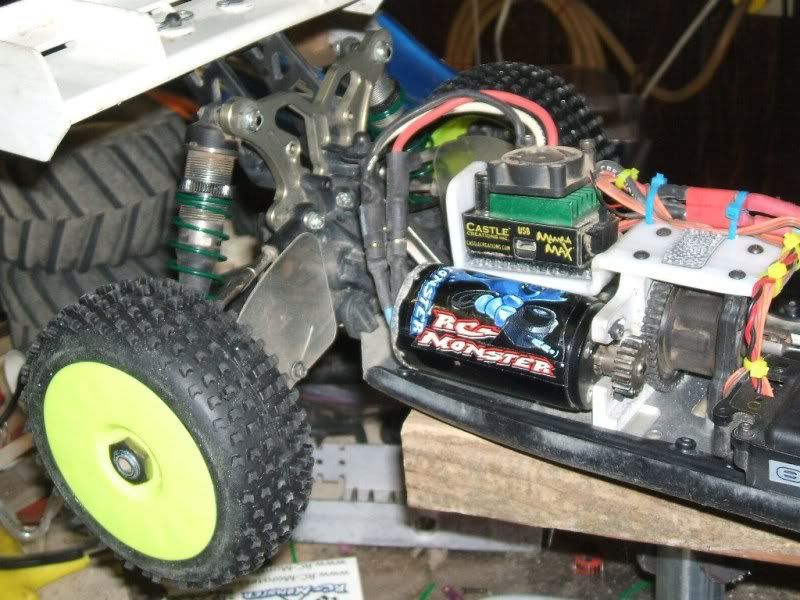 http://www.youtube.com/watch?v=weqnoYrlLaA Throwing in a couple pics of the ESC mount I made out of lexan. Got the idea from how Drift_buggy had his setup. This was the second one first one still didn't give me the clearence. Also, made a battery tray out of lexan. It holding up for now. Wasn't the greatest job. Need to have more patience when heating up lexan up. If it gets too hot to fast it will bubble up. Going to make one from clear lexan next time around. http://i212.photobucket.com/albums/c...f/DSCF6513.jpg http://i212.photobucket.com/albums/c...f/DSCF6512.jpg http://i212.photobucket.com/albums/c...f/DSCF6496.jpg |