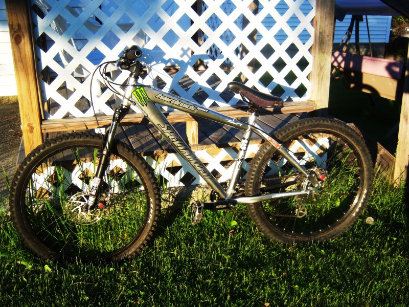I ride a Specialized 09 P1, so far I have odyssey plastic pedals, Bandanned seat, ditched the front brake, and a few little things. Got the weight down to 29 pounds, so not bad. I can bunny hop 3 feet up with it:yipi: So im happy with the weight, for now:oops: And also, if you want to get on some sweet forums, http://www.ridemonkey.com/forums/index.php Crappy cell pics, in my buddies messyyyyyy backyard lol. The black one is my buddies mirraco 24. http://i453.photobucket.com/albums/q...456710a372.jpg http://i453.photobucket.com/albums/q...674d0c22ec.jpg |