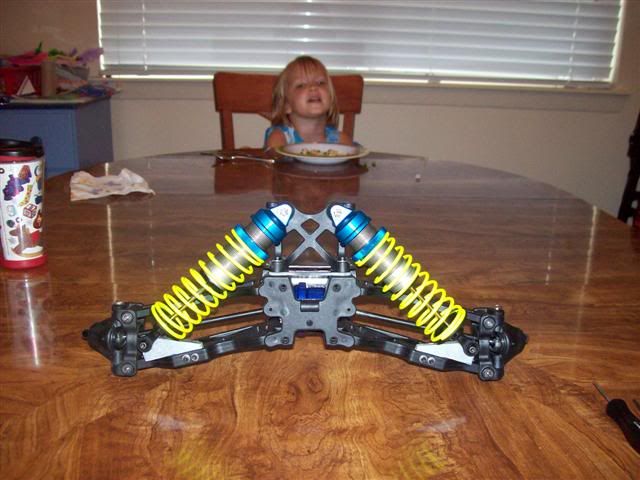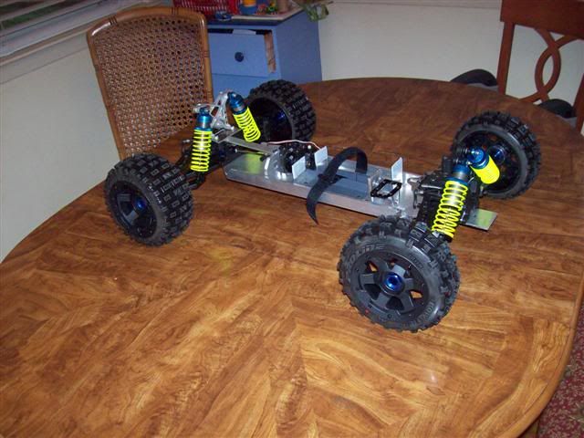 http://i779.photobucket.com/albums/y..._4395Small.jpg http://i779.photobucket.com/albums/y..._4396Small.jpg http://i779.photobucket.com/albums/y..._4398Small.jpg http://i779.photobucket.com/albums/y..._4402Small.jpg http://i779.photobucket.com/albums/y..._4403Small.jpg So I still need to install the steering assembly and front brace, make the front extended cvd, install esc/bec, and install roll cage and wing. But I'm beginning to think I'm going to be driving this thing this summer. :yipi: |
