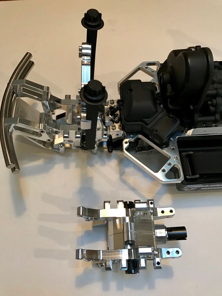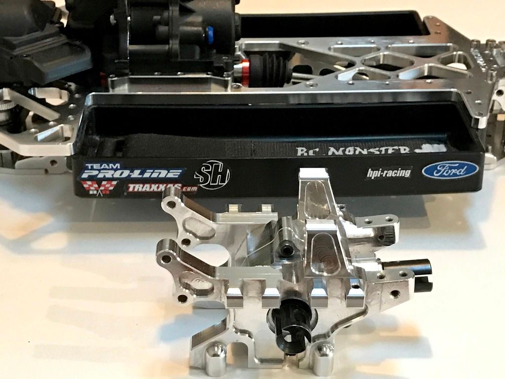 http://i1342.photobucket.com/albums/...sddamfeup.jpeg http://i1342.photobucket.com/albums/...shl9nw1uz.jpeg http://i1342.photobucket.com/albums/...s9xncixtz.jpeg Pics of recent additions to the V-Maxx build. I have installed a Hot Racing aluminum bearing saver steering kit. I removed the blue anodized part of the kit and polished it. (Blue did not go with the color scheme.) Also installed the receiver case. The extra FLM diff case and gears are for the FLM chassis #2 truck upgrade. Getting the second hybrid diff case soon. |