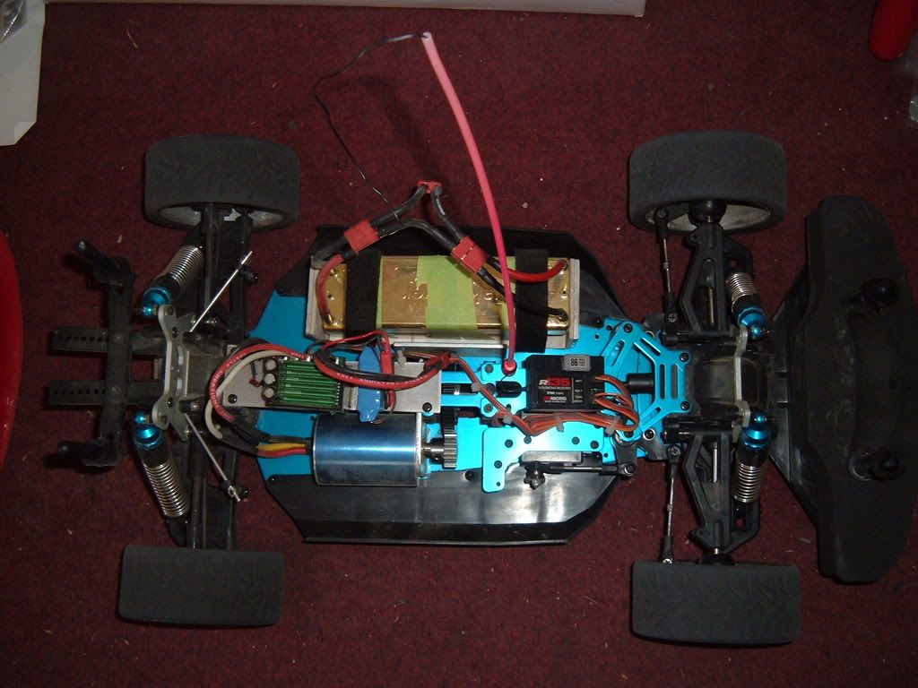 - Feigao 7L - MM ESC - FP 4S 5000mah - 21/44 gearing - Ferrari body We tested this setup on Wednesday night and it did quite well in my opinion. I am running 2 60mm fans, 1 for the motor and 1 for the ESC blowing right on them. No holes cut out in the body. The fans work GREAT!! They were from CompUSA for $5 each and are rated at 26CFM/12V. We maxed 71mph on the radar and easily got 10 minutes of bashing. I did not get to run it longer as I am using the RCM 2 speed adaptor and a Losi 2nd gear pinion but I did not think about putting on the 1st gear and I backed out the gear due to braking!! I think this car has the potential to push triple digits with as little as 6S!! The problem I see is getting the right body!! They have the bodies here, but at one heck of a premium!!!! http://www.deltaplastik.it/index.php...at2=11&cat3=15 |