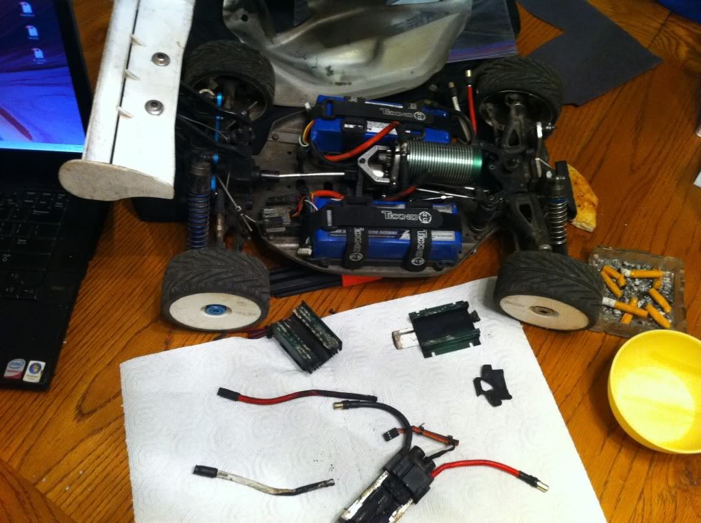 Plugged in my XL, was beeping for a bit until I realized I hadn't plugged it into the receiver since downloading my last run... plugged it into the receiver and it didn't arm. So I unplugged the batts from it, and plugged them back in. Went through it's start-up routine just fine, armed, and I drove the car about 20 feet. It stopped wheels turned (like the BEC turned off) then came back to life, drove another 2 feet and FIRE!!! :cry: My new super bad azz Mamba XL is dead, and it tried to take my car and lipo's with it. The batts appear fine aside from a little loss of heat shrink in a few spots and the receiver looks ok too. I just plugged in my MMM and the car runs/ drives fine. Looks like I'll be spending some time on the phone tomorrow with Castle support. http://i217.photobucket.com/albums/c...5/IMG_0199.jpg http://i217.photobucket.com/albums/c...5/IMG_0195.jpg |