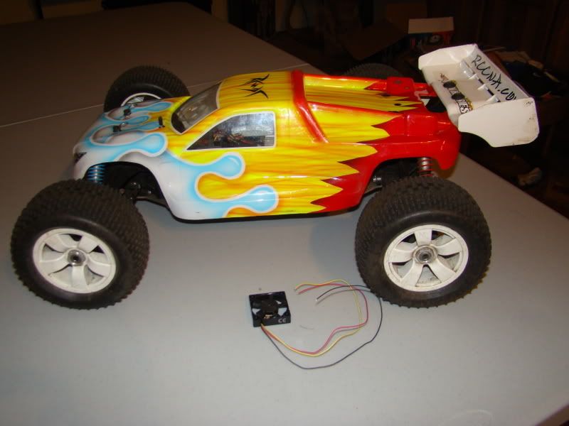 Decided to mount the fan/MM a different way. cut out a piece of spare plastic and mounted to the diff. then took a piece of the "nitro" center diff mount to screw the fan into. Works out alot better than i initially thought. WOW this fan makes a difference.