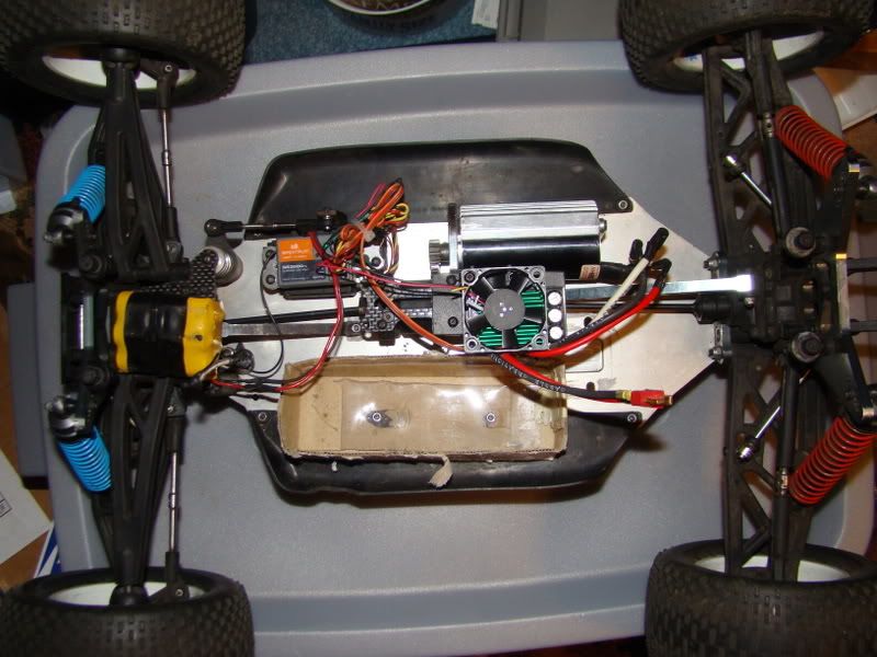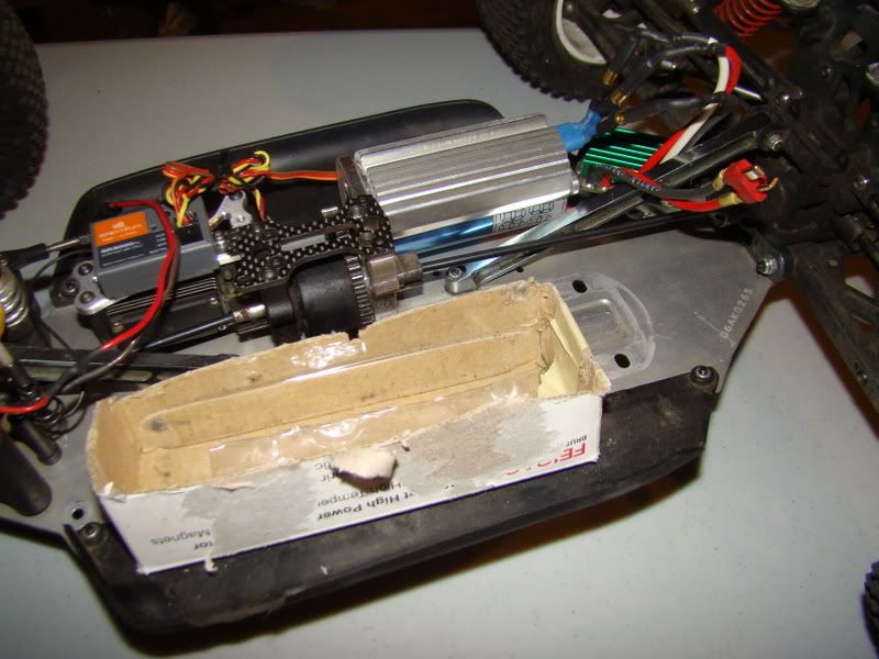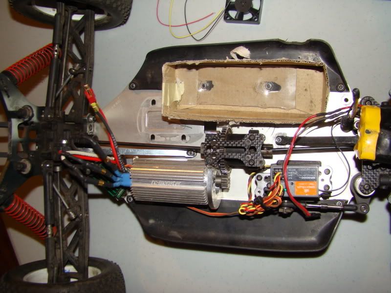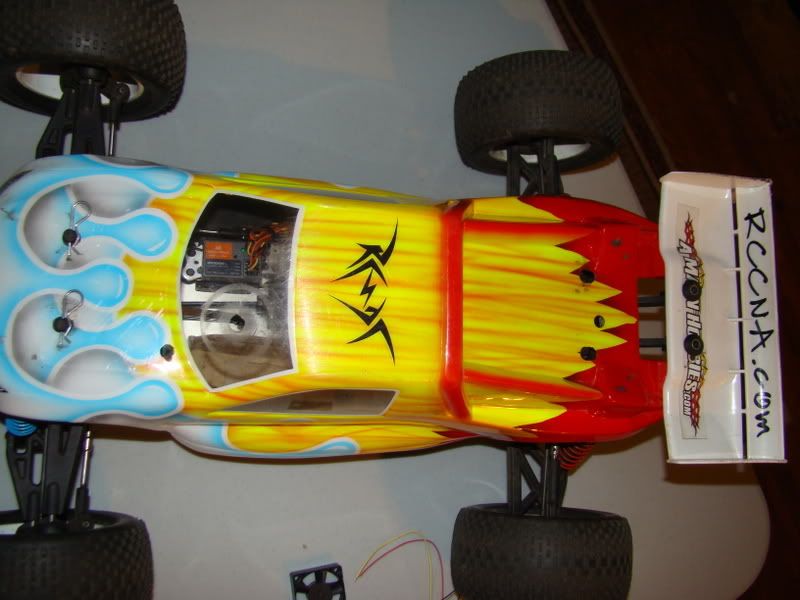 Got the MM problems worked out. I changed the timing to low and start power at low...now it runs pretty good on 12 cells, just not very fast or much power. It could be a good qualifying setup though when lipos aren't available. Got a package today from dafni with a kick ass body and fan for my MM!! can't believe how well this thing is painted. It's my first "real" authentic custom painted body. All i've had before this was stockers and single schemes. DAFNI IS DA MAN!!:party: Also made a slighly cleaner layout. I'm using a modified cardboard box (from the Feigao motor) as my battery mount. Pretty ghetto but hey, it works(sorta kinda), and it was free. I use tape to keep the batteries in LOL. Man is sounds so much worse once I type it on the computer screen lmao. http://i66.photobucket.com/albums/h2...2/DSC08222.jpg http://i66.photobucket.com/albums/h2...2/DSC08223.jpg http://i66.photobucket.com/albums/h2...2/DSC08224.jpg http://i66.photobucket.com/albums/h2...2/DSC08225.jpg Peace |