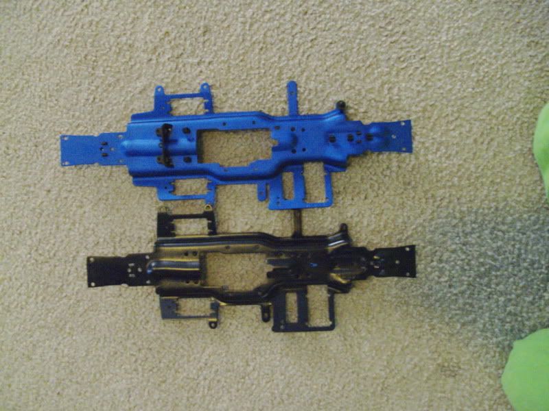 Got some things done today, but have a long way to go to get the truck done by sunday Heres what I have so far Painted the new 3.3 chassis http://i152.photobucket.com/albums/s...0/revo/016.jpg http://i152.photobucket.com/albums/s...0/revo/017.jpg Modded a spare set of bulkheads i had as a test http://i152.photobucket.com/albums/s...0/revo/018.jpg http://i152.photobucket.com/albums/s...0/revo/019.jpg Modified the stock drive yolk to fit until i get my rc monster pieces http://i152.photobucket.com/albums/s...0/revo/024.jpg http://i152.photobucket.com/albums/s...0/revo/026.jpg I also took the stock revo wheel output shaft and hacked the end of the piece off, then had to grind it down to go into the case and spin without binding. started to shave the cases, so far the rear bulks are about 80 percent done, but still need some tweaking.. Things to be done by sunday: -Paint body (not here yet) -Modify front diff and housing -complete rear bulkheads -start and complete front bulkheads -Finish swapping everything over to the 3.3 chassis -Install new stub shafts at the wheels (not here yet) The body and stub shafts are in route, and should be delivered tommorow.. Lets all pray :) I just got off a 9 hr shift and its 2am. im going to bed. Crap my body deliever has been delayed... i guess ill just mod the 2.5 to fit. |