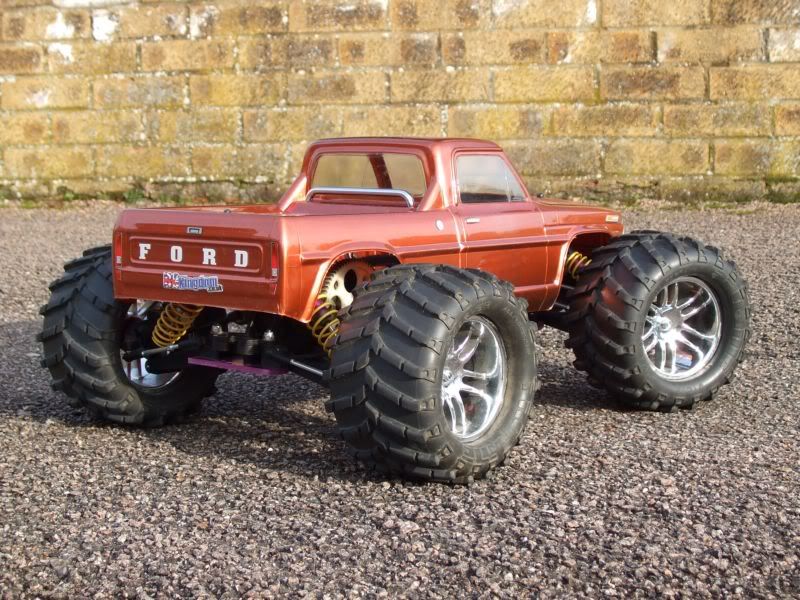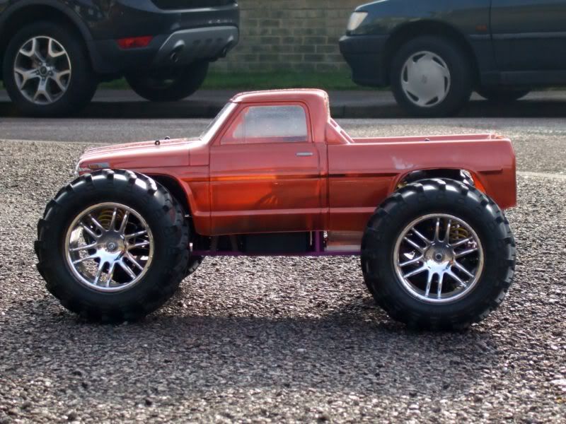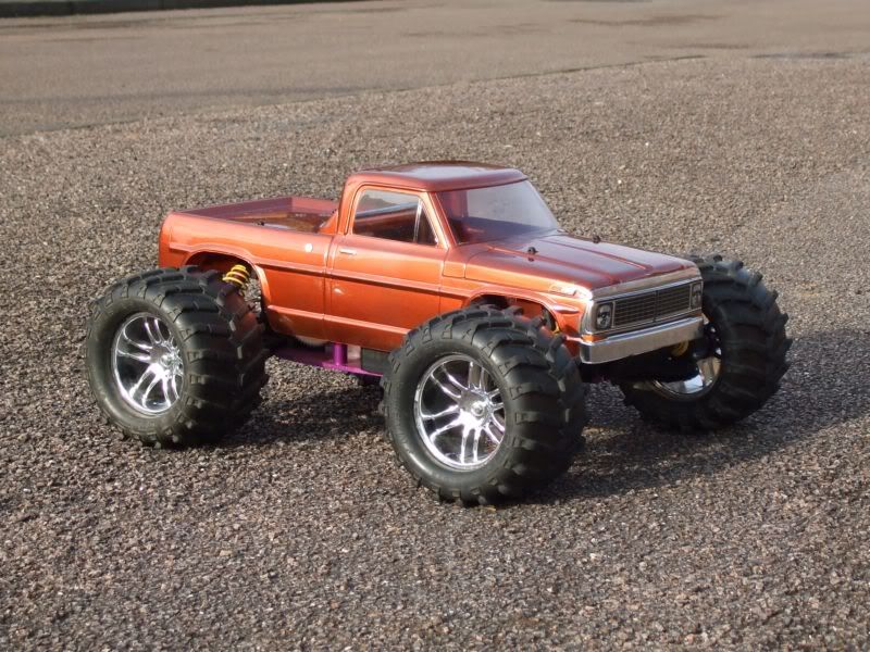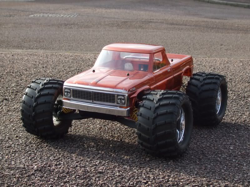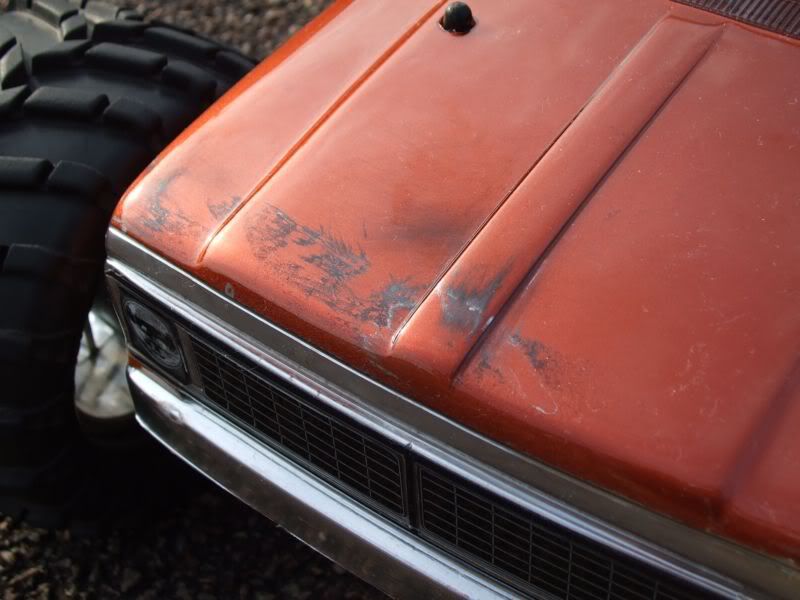 ...the worst paint job in all of history: http://img.photobucket.com/albums/v6...r/DSCF0240.jpg http://img.photobucket.com/albums/v6...r/DSCF0241.jpg http://img.photobucket.com/albums/v6...r/DSCF0242.jpg http://img.photobucket.com/albums/v6...r/DSCF0244.jpg http://img.photobucket.com/albums/v6...r/DSCF0243.jpg It's a long story of how it came to be that bad, but suffice it to say that me, and paint, don't get along very well. Originally it was going to be black fading into the Tamiya Copper colour you see there, but the supplier sent me blue instead of black, so I thought I'd just try solid copper with a chrome grille. Big mistake. The masking bled paint everywhere, the masking tape itself left a load of gunky residue (hence the mess on the front of the bonnet), and the rest of the paint came out patchy due to it being so cold in my garage I think. Still...I think it kinda looks like a bit of a rustbucket lol (the mess up front kinda looks like bare metal when you see it in person). It's only going to get beaten to death anyway, so doesn't really matter I guess...:whistle: |