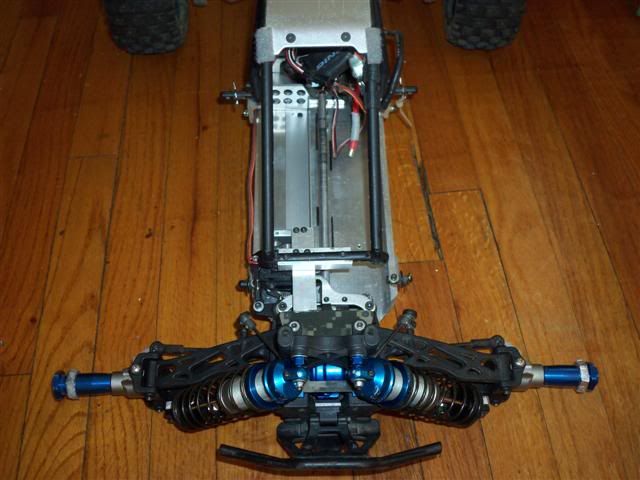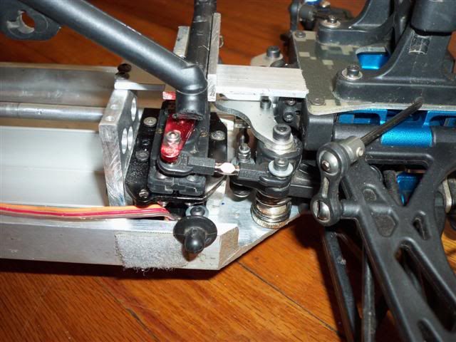 http://i779.photobucket.com/albums/y..._0702Small.jpg I spent some time getting the steering as smooth as possible, there were some places that were offering a little resistance. I also moved the steering servo forward as far as possible: http://i779.photobucket.com/albums/y..._0707Small.jpg in order to open up more room for my battery compartments: http://i779.photobucket.com/albums/y..._0703Small.jpg http://i779.photobucket.com/albums/y..._0705Small.jpg I want these to be as large as possible to give me more options when I buy new packs. I'm planning to purchase 2x5s 5000mAh packs to run in this and I should be able to get them to fit now. I have both more length and width on the trays and they are adjustable, too. (max length = 170mm, width = 50mm on one side and 45mm on the other side) I can move my current batteries farther forward to get more weight over the front tires - maybe improving handling. I can also adjust the width of the tray by loosening two screws and sliding the long Al angle. I have to cut pieces for the other compartment and then I will make a single Al strap to tie both batteries down. I'm hoping to be able to make something that is easier to use than a bunch of velcro straps under the rollcage, which I used previously. |