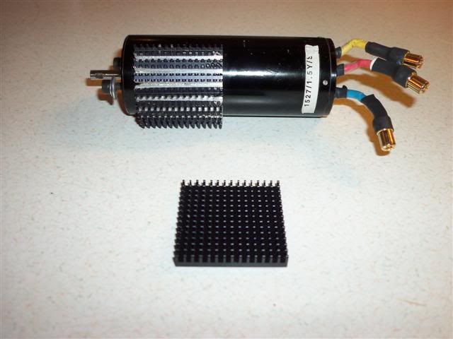I decided to add another heatsink to my motor. I was unable to find any clip on ones that would fit in my confined space, so I made my own from cheap cpu heatsinks.