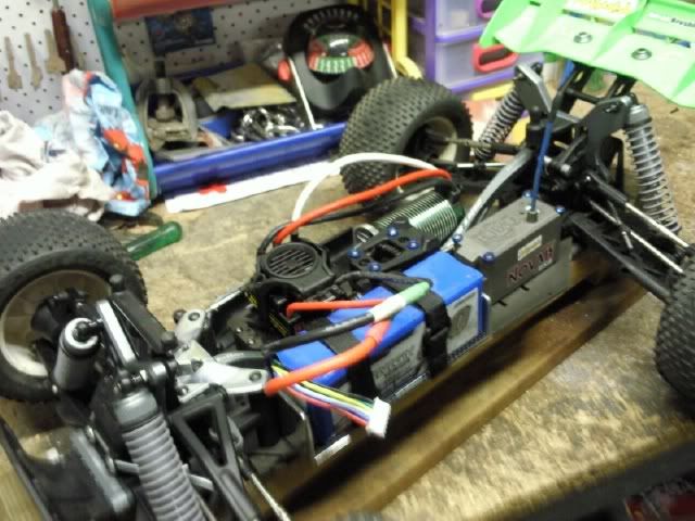 A problem i will try to sort out tomorrow is getting the wheels balanced so my truggy isn't getting shaken to bits. Also my 30c 5s Turnigy lipo is performing very well and doesn't get too warm. Takes 128mins to fully charge. Loads of power! |