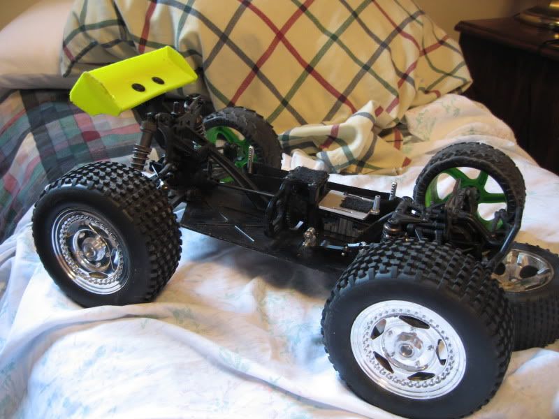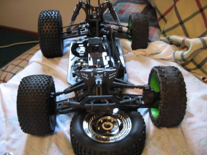 My problem is the pin hole is not large enough. The pin fits through the adapter by itself, as well as through the axle (obviously its a stock pin). The problem is once the adapter is on the axle it will not go all the way through (its like a tenth of a MM from going). One of them mounted up perfect, the other 3 I cant get the pin through. I think im just going to open up the pin hole a TINY bit so there is more space so they can go through. THe second problem, is the axle pin hole is drilled on the VERY edge of the adapter, so there is about 1mm of space between the mounted adapter and the bearing. This of course results in slop. I asked if he wanted to take measurements and redrill them (probably yes) or if he wanted to include shims to shim out the difference so there is no gap. Still waiting on a response...! I will try to get a picture up soon. I have some 1/8 badlands on one side of the truck and some Ofna Blaser SST stadium tires/wheels (no longer made, but I think they are the perfect bashing size. About 3/4 inch taller and about 3/4 inch wider than the badlands 1/8 tires). I think 1/8 buggy tires are going to be the best overall though, for racing/bashing etc. Its just nice having a slightly taller tire to gain ground clearance for really rough terrain. |