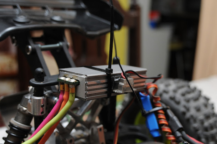 Yep... I have two options... horizontaly with the fans facing downward and horizontaly with the fans facing the motor (this one will allow more air flow over the heatsink)... with new motor mount i think it will allow me to mount the esc inline with the motor again, but it's going to be a tight fit. |