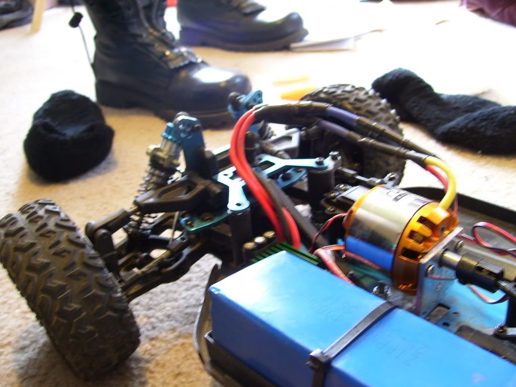 Hmm, I'd move the motor to the rear more, lower it as much as possible, and have Mike make two driveshafts, voila, 4wd! Thanks for this thread, I've got two buggies collecting dust that I now want to convert with an outrunner like you did.