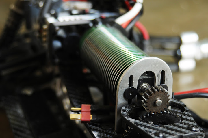 with ESC setup and pinion to see if I would get better results... and I did... I remembered when I was first testing the hacker, the 'Torque Selection' was change from 'Soft' to Dynamic Initial Torque'... So I went back through the Quark programming and changed the initial torque to 'Normal 1', one step above 'soft'... I swapped the 15t pinion for a 18t just too see what would happen... this motor had so much torque I assumed it could handle the gear up... I was not wrong about this, The motor showed off what it could really do with it's power and pulled the truck just as hard when it was fitted with the 15 tooth... Very impressive to say the least... the temps were also surprising... the esc only got to 112° F :surprised: (well it had some help from the heatsink)... I thought it would have been much higher with the larger pinion... the motor stayed in the high 120s :mdr: The setup: Differential Ratio: 4.3 Transmission Ratio: 1 Other Ratio: 1 Spur Tooth Count: 51 Pinion Tooth Count: 18 Total Voltage: 18.5 Motor KV: 1600 Tire Diameter (inches): 5.65 Tire Ballooning (inches): 0 Motor Current Draw: 0 Motor Coil Resistance: 0 Spur/Pinion Ratio: 2.83 : 1 Total Ratio: 12.18333 : 1 Tire Circumference (inches): 17.75 inches (450.85 mm) Rollout: 1.46:1 Total Motor Speed: 29600 RPM Vehicle Speed: 40.84 mph (65.6 km/h) Effective KV Value: 1600 KT constant: 0.85 oz-in/A http://lh4.ggpht.com/_4vPm5E8J5HA/Sz...0/DSC_1681.jpg http://lh6.ggpht.com/_4vPm5E8J5HA/Sz...0/DSC_1682.jpg CC 1520 with a 18t pinion http://lh6.ggpht.com/_4vPm5E8J5HA/Sz...0/DSC_1683.jpg I'm going to run it on 5s tomorrow and see it goes... going to also try and get some vids done too (good quality I hope). Alien |