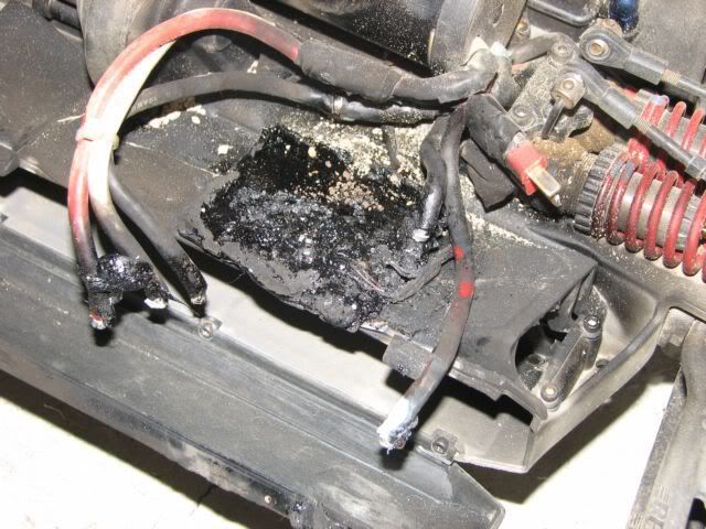 I posted this in another forum, but I thought it may apply here as well... For those that have been asking about the fan wire rubbing issue that the V1 had.... Castle has addressed this issue. For those unfamiliar with this, look at the following pic of a mmm v1; http://i87.photobucket.com/albums/k1...sam/MMCASE.jpg The case was rubbing the wires bare and in some cases broke fan plugs off. ---Patrick said this would be addressed, and it was. Their solution was a foam pad that conforms to the electronics and prevents the wires and such from rubbing; http://i87.photobucket.com/albums/k1...m/IMG_1373.jpg Also, people did not like the fan in the MMM V1. They have had a very high failure rate. In V2, the fan only comes on when the ESC is at 150F or higher;(patrick mentions this in another thread) Castle now includes an insert that addresses this. http://i87.photobucket.com/albums/k1...m/fanstuff.jpg On a side note, To prevent my E-revo from the possibility of looking like this; http://i87.photobucket.com/albums/k1...m/IMG_4482.jpg I made a metal (Al) plate to cradle my MMM V2 in; http://i87.photobucket.com/albums/k1...m/IMG_1374.jpg http://i87.photobucket.com/albums/k1...m/IMG_1375.jpg http://i87.photobucket.com/albums/k1...m/IMG_1377.jpg The plate is DS Taped and screwed into the chassis, the MMM is DS taped and Zip-Tied to the plate. If it burns up, at least the plastic wont melt too much.:neutral: (thanks for the idea, neil) Anyway, Hope this helps others that are on the fence about the MMM V2. Its working great so far. Tho, with the support Castle has been giving, i'm not worried in any case. Even if it fails, they are on their game. They will take care of it. Still my top pick for upgrading the e-revo As for the abuse; I have run my MMM on 4s and 6s. I use a Tekno Neu 1515/1Y in my e-revo. My gearing was 24/58. I did full throttle into full braking. High speed runs back to back. :diablo: Tall grass running (taller than the truck) I was able to get my 6s batteries to 130F (2 3s zippy 4300's) oops My motor to 203F (not good) All the while my fan on my MMM turned on for about 2 minutes. The highest temp was 155F. It was about 94F outside when I did most of my "testing". When running my 4s set-up; The motor hit 178F The batteries hit 118F (2 2s true rc 8000mAh 15c) The MMM fan turned on, but by the time I got the body off the truck to check the temps it had already shut off. so 148F when I checked it. I have since, changed my gearing to 24/62. My highest motor temp now has been 174F. will probably move to 24/65 gearing. the power of this set-up is incredible. great job castle! |