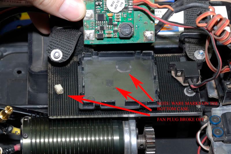 This is what the dremel job looked like on my V1. I just did the same thing on the V2 and left the pad out. You still need to open up the spot on the top case where the controler and switch wires come out as well. Nothing chaged from V1 to V2. Still a tight fit and still rubbing the wires. Open up the slot on the cse a bit and wrap a few layers of electrical tape around the wires and its fine. I also cut the fan grill out on the V2. The fan still catches on it when it turns on and kills the fan. It just lasts 3 packs now instead of 1. As long as the BEC doesnt quit, they have done enough. The rest can be fixed ourselves. with 10 minutes and a dremel. http://i66.photobucket.com/albums/h2...z/CIMG3209.jpg |