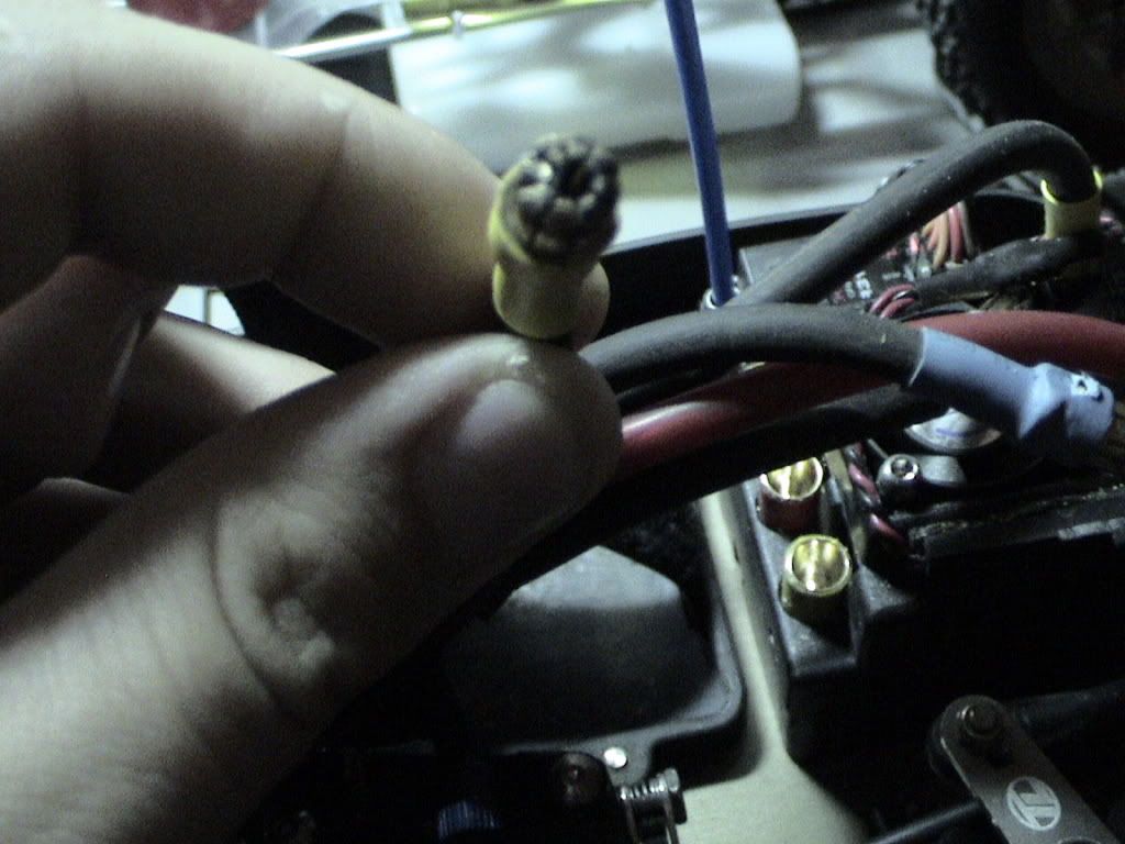 ....making it impossible for the MALE connector to touch but not impossible for the FEMALE connector to touch. the female connector is what i am referring to. or also the male portion that inserts in the female. (now i am sounding like sex ed.:lol:) unless you heatshrink it, tape it, bend heatsink, it can/or already is touching. but that is besides the point now. you mentioned something that may be the answer. that if the male connector came out and was touching the female connector lightly that it could cause this short. is that correct? if so that is what i am thinking happened at this point. curious though? how does this cause a short just by lightly touching if it is still touching the right connector? also, should i change this connector? will it affect the performance? if the connector has the gold finish rubbed off does this also affect performance? here are some more pics to help us find the answer and help us see eye to eye. my camera is not the best but you can see the heatshrink is fine. aside from that though look at the connector. it has a round shape zap in it like where it rested on top of the female plug on the esc. so i was thinking that it must have slipped out, bounced around, and touched the heatsink and female connector at the same time whilst one of the batt. famales on the esc is up against the heatsink also, causing the short. but if the light connection itself could have caused this that is likely the answer. any input on this? the last pic is of me holding a female end to the male end that shorted to show how the tip of the male connector has the indentation of the female connector on it. (whew! long winded explanation) ps. sorry but for some reason i could only post links to the pics. http://i471.photobucket.com/albums/r...s/DSC00482.jpg http://i471.photobucket.com/albums/r...s/DSC00483.jpg http://i471.photobucket.com/albums/r...s/DSC00484.jpg http://i471.photobucket.com/albums/r...s/DSC00485.jpg http://i471.photobucket.com/albums/r...s/DSC00486.jpg |