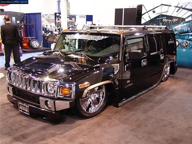 Yea that does look silly. Kind of pointless wouldn't ya say? I bet it rides like crap to, because of the way they had to modify the suspension just to get it lowered like that. What a waste of a Hummer. Like you said I can appreciate the talent and the amount of work it took to do that, but for what? Sorry I am more of a practicality type person. All that flash for cash stuff is just stupid to me. Belive me when I was younger I used to put high value stereos in my rides, but one can only take so much loud music and the human ears were just not meant for that kind of punishment. I am sure that money could have been spent for a much more realistic facelift.