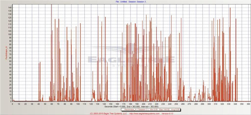 What happened to informed intelligent discussion? The numbers don't lie, I am curious how the SCT combo is specifically labelled as 2s only (no 3s with that motor on that ESC) yet the Flux XS uses an ESC with similar specs, a motor which is clearly less efficient, but they pretty much invite you to run 3s through it. I've been told here that a 30 odd amp jump is reasonable for 200kv, so by that logic, if I go down from the 4000kv to a 2000kv, my battery should be getting charged as every 200kv drop is a 30 amp drop? Doesn't make sense. I have no problem proving my data: Flux XS, stock esc, stock motor http://i212.photobucket.com/albums/c...ata/fluxxs.jpg Compared to Flux XS, stock esc, Castle 3800 motor http://i212.photobucket.com/albums/c...rreststock.jpg And when placed in a Hyper 10SC, with a HPI Q Base esc, geared for around 30-35mph, the 4000kv motor still pulls huge amps (and runs hot) http://i212.photobucket.com/albums/c...v15tpinion.jpg ..the numbers don't lie. (Esc's both run with default settings, deans plugs, Turnigy Nanotech 65/130C 2s Hard Cased Lipo) |