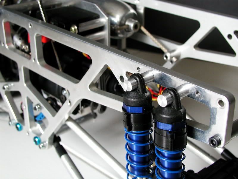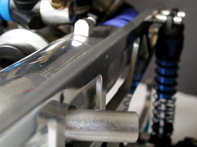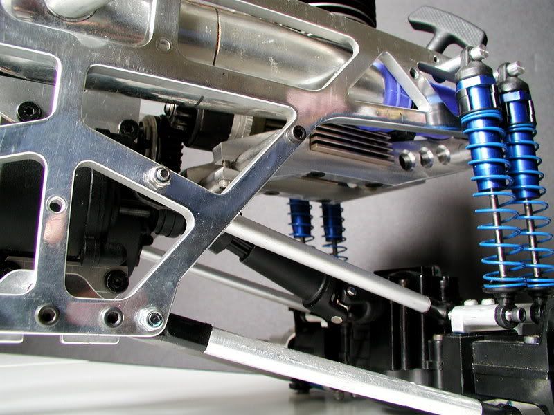 spent the last few nights trying out various shock mounts and finally ended up with these....i call 'em my "nice and clean without any fuss" look... they look like standoffs with the shock slid on..but they are "captured" .......will post detail pics soon..... but for now, here's where ev·o·lu·t-x-tion is right now.... http://img.photobucket.com/albums/v4...n/P2030034.jpg here's the underbelly shot..... http://img.photobucket.com/albums/v4...n/P2030022.jpg http://img.photobucket.com/albums/v4...n/P2030025.jpg rearend! http://img.photobucket.com/albums/v4...n/P2030015.jpg frontend http://img.photobucket.com/albums/v4...n/P2030016.jpg here you see the chassis milled off on the inside to clear the pipe. http://img.photobucket.com/albums/v4...n/P2030030.jpg http://img.photobucket.com/albums/v4...n/P2030066.jpg |