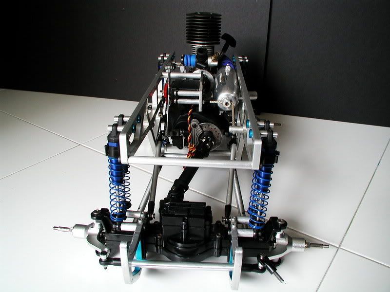 That was me, I want to do a custom tube chassied Gravedigger with a similar setup. My concernis that the diffs are oriented wrong for nitro, I was planning on using TXT-1 axles to