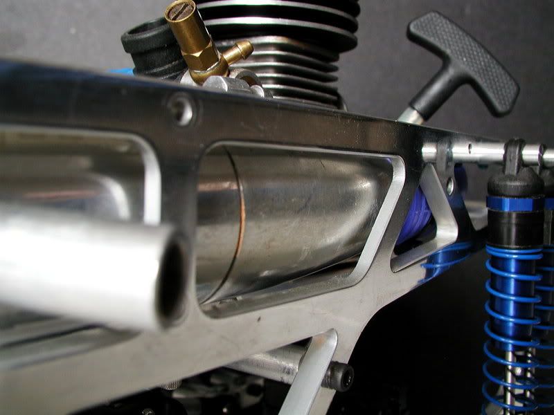 http://img.photobucket.com/albums/v4...o/PB230025.jpg got my powerplant from my "used" donor hyper 7 http://www.daddyhobby.com/gallery/da.../PC140018B.jpg http://www.daddyhobby.com/gallery/da.../PC140010B.jpg here's a "before" picture to show how much material i had to remove!!! http://img.photobucket.com/albums/v4...o/PC130005.jpg here's the updated motor mounts....still not done yet but basically the profile is somewhat final..... gear mesh is adjusted by sliding the entire engine and mount along the crossbars... http://img.photobucket.com/albums/v4...o/PC200003.jpg http://img.photobucket.com/albums/v4...o/PC200002.jpg glad to say that the ol' eye-ball-O-meter is still calibrated...... did a trial fit last night...and the spur and clutchbell line up perfectly! Haha. http://www.daddyhobby.com/gallery/da...PC140002bb.jpg right now...i have two choices ..... do i mount the tuned pipe inboard? which i'm more inclined to do right now as it will look very trick but it will be VERY close to the throttle servo! say bout 10 to 15mm away....Q:will a servo fail being exposed to heat from a tuned pipe? or outboard? for this i'd have to think of a solution to extend the header pipe to the outside of the chassis....this i've been told will alter the characteristics of the engine or i might reduce/lose the pulses needed to "pump" the fuel back into the engine....or BOTH!!!! any nitro experts care to comment/advise??? i'm a nitro noob as you can tell by now! well, this is how far i've come so far.....any thoughts/comments/advice guys? TIA |