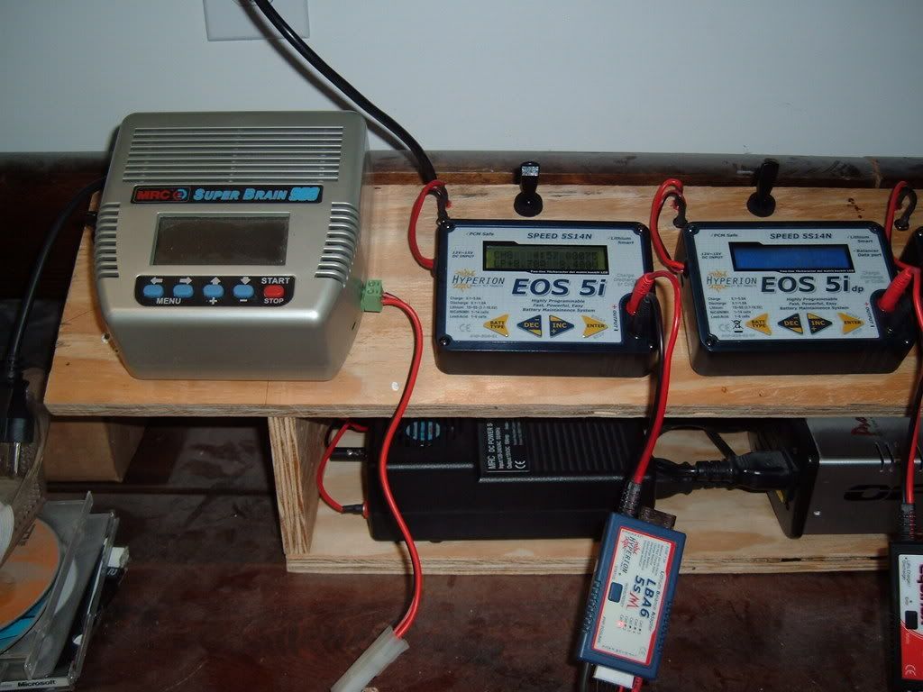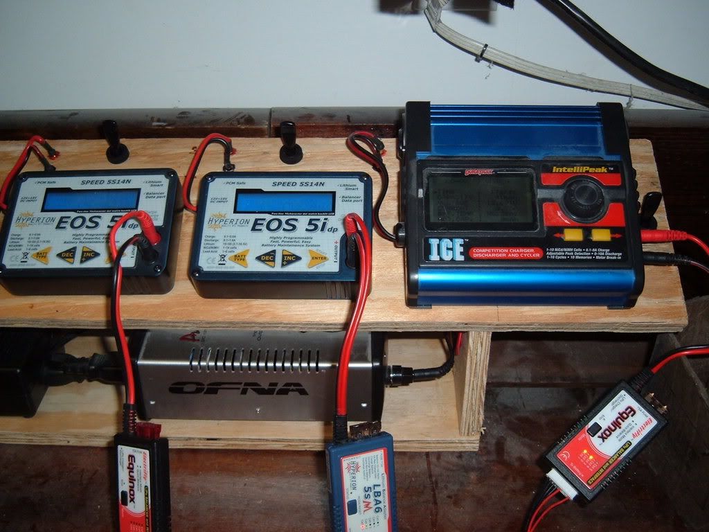 You can really put some stuff to charge all at once with that setup. I have one of the MRC chargers just like yours. I really do love it. I made a special charge lead with 4 different plugs on it. I only use one at a time of course. I use it to charge various lithium ion thingies around that I've converted. (Fans, Flashlights, Florescent Lanterns, etc.......) Plus my Lipos of course. Out of the chargers in your station, Do you have a favorite? |