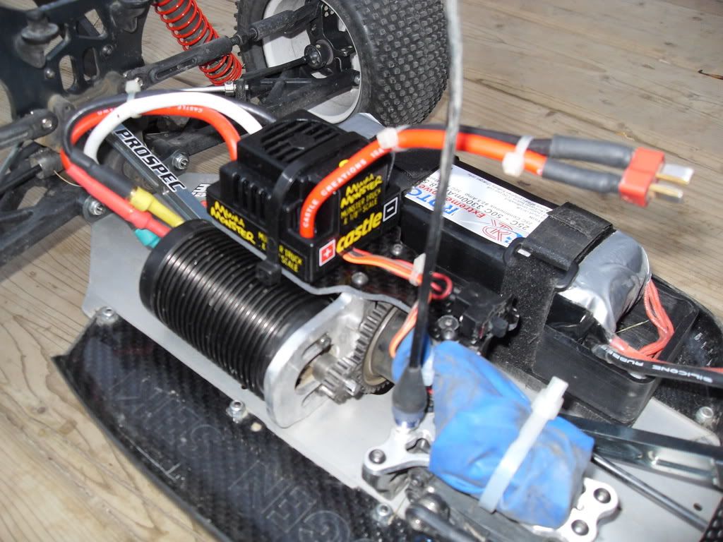 after about three weeks of have having the new esc just sitting on the shelf i have finnally installed it on my truggy, just made a small plate from carbon and attached off the center diff. mount, i have been waiting to see if i still liked my mgm or any problems, so now i have changed now and all so far is good. seems to have more direct power then the other esc, wil test at the track on sunday.