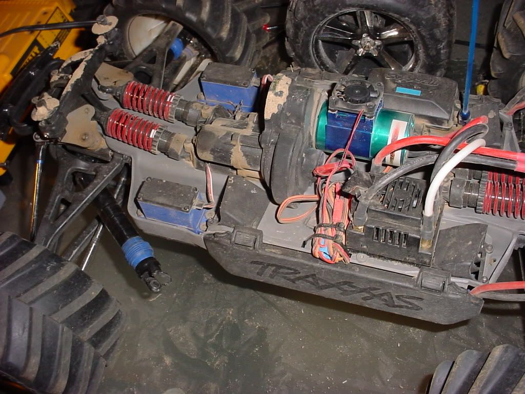 Then I hit WOT in reverse for a few seconds and noticed it was much more powerful. Duh! Now I feel stupid. The Throttle Channel on the Radio was reversed and it was running around programmed for 50% Reverse. After swapping two motor wires and reversing the Throttle Channel, things REALLY came to life! Perfect on 4S! Motor temps well in hand with the fan/heat sink, but now the fan on the ESC was cycling on and off. Well I had to try it. 6S! Now it's a different beast entirely. Tire Ballooning, rolling wheelies and increased temps. Continous operation would overheat the motor. I'm going to enlarge the heat sink area on the motor and possibly add a second fan. It will go from 0 to uncontrollable in about .5 seconds. My run was cut short when a drive shaft gave up! Can anyone say power? LOL http://i160.photobucket.com/albums/t...m/DSC07195.jpg |
