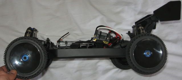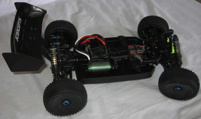 with 4s and a 1512 2.5d i am thinking about a 17-19 t pinion , the rc8 has a 44t spur and truggy diffs for tires i have been thinking of the proline revolver wides or aka tires (either) for now i will run the ft shocks , with some mods , rtr caps and bladders that are cut out , and about 5mm of fuel line inside on the shafts and start with 40 wt i cut the esc. top mount plate , the part where the esc. mounts is about half the size now , i decided to try and mount that novak motor with a 12t and it was way off:rofl: pics will come once i get a body painted , motor, and i get Mikes chassis:rules:.......no sense in wasting thread space , it will be a few weeks though i will hopefully have some vid. of a race coming up on the 6th of Dec. , there are a few of us here that are going to go and hopefully have enough to have a electric buggy class , i will run it as is if i need to , really dont want to let any of the guys up here down , even if it goes up in flames.........the motor is a 4.5 hvmaxx motor and runs hot and the fan on the esc. runs alot as well ill check out that tire thread , thanks |