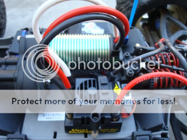 this is my first post, its a bit lengthy! first i want to thank monster mike for adding me :party: also all the people on this forum that have shared there knowledge and ideas. I have recieved my 2200kv combo:mdr::mdr::mdr:!!! thank you superfastrc for the superfast shipping, great company and awesome service! i was running it last night and all i can say, which is an understatment, is "WOW" this thing really is a monster, tons of torque throughout the power band, insane top speed and grin from ear to ear the whole time! bring on the nitros, they're for breakfast! thank you castle! you guys have brought a world class product (as all of your products are ) with the Mamba Monster, that i really believe will change 1/8th scale rc racing (nitro whats that??)! nice work on the deals with traxxas and hpi both awesome trucks! i wanted to post some of my temps with the combo in my E-revo after some hard asphalt and grass running... but let me first give the specs of what im running exactly; so the data will all be there to see if im within good limits or need re-gearing or adjusting anything. car: e-revo - stock diffs/transmission gearing setup: MMM COMBO 2200kv - cant stop grinning Gearing: 22/62 tires: stock talons on 17mm hubs Battery - SPC 12C 2s2p 8000mah packs Deans Ultra plugs all the way around and 10gauge wire for consistentcy calibrated remote to MMM, DX3R epa is 100 MMM Settings - - timing low - everything else factory default i ran 2 sets of the same packs through last night and the good news was temps were consistent. outside temperature was about 55F Motor was at its peak end of hard run - 165F when i checked periodically the temp was about 145-155F Esc - never broke 120F it was about 110-115F most of the time, funny thing was the fan turned on at the 110F mark then when i went to check it, it turned off in about 20 seconds - is that normal? i know is supposed to come on at about 150F but im not complaining Battteries - the hottest they got were 125F, but most of the time around 105-110F... i beleive spc says no hotter than 140F My question is what do you guys think are these safe temps or should i make adjustments? i was thinking also the temp outside was 55F which is cool, so on a 80-90F day would i be close to unsafe temps? also i know you guys might be saying we want pics! i know i know i will post some and i have a special treat for all of you e-revo fanatics that are getting the combo or have it and are saying how am i going to hold down the MMM ESC without the factory holder??? i have a holder that im sure all of you will like - it costs near nothing and it works awesome! i will post pics (nope! it doesnt have velcro, tape or zip ties!) p.s. i have posted this on the traxxas forum and wanted to get your guys input here (thanks vxl and lee for your replys) |