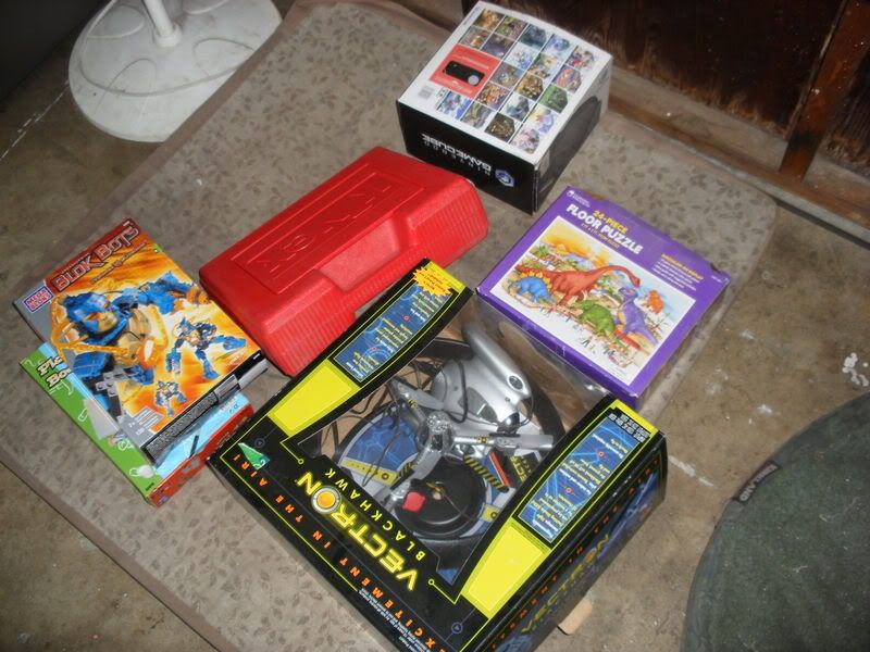 I've got the following to who ever wants it. a used (but in great shape) foozball table (not in the picture) a used (but in great shape) Gamecube (no games, but all required wires) a Vectron blackhawk UFO (thiningy) some kid puzzles, etc.. check out the photo and let me know.. Thanks for your time Shaun. http://i264.photobucket.com/albums/i...7/DSCF0742.jpg |