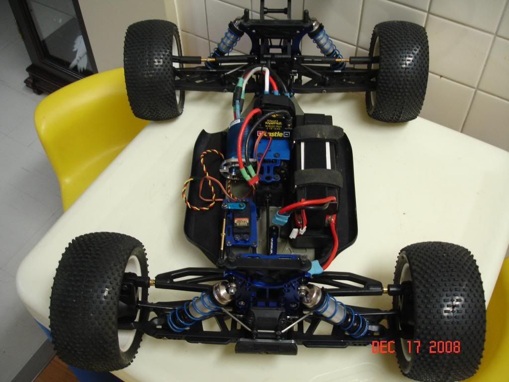 Anyway, I just completed an ST-RR conversion last month. It's running with the TeknoRC Neu 1515 1Y (I took it from the Gmaxx) on 5S Neu 5000mah(2s and 3s in series) with an MMM V3. I'm using the stock 50T spur with a 16T pinion. Highest temps I got were: Motor-130F, ESC-102F, Batteries-100F. Air temp was about 58-60F. Here's a couple of pics: http://i256.photobucket.com/albums/h...Picture038.jpg http://i256.photobucket.com/albums/h...Picture036.jpg |