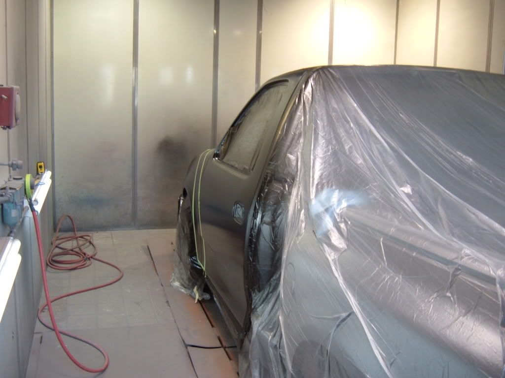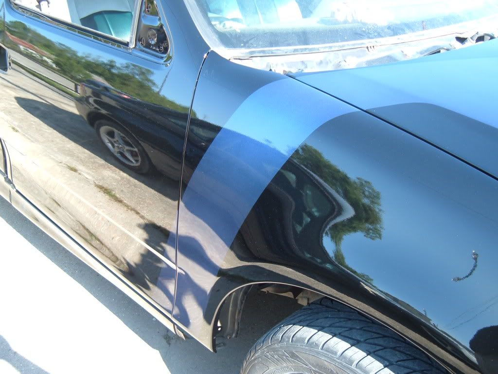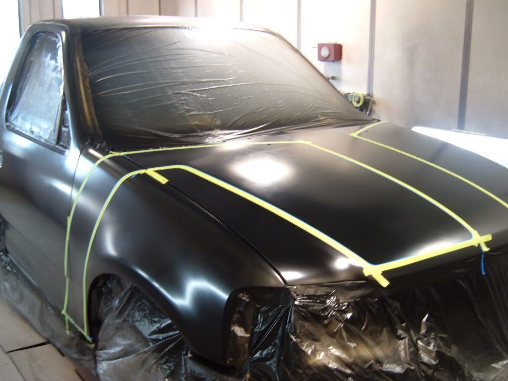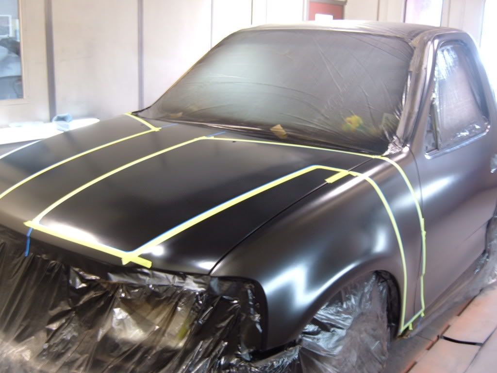 http://i206.photobucket.com/albums/b...p/DSCF3275.jpg http://i206.photobucket.com/albums/b...p/DSCF3276.jpg http://i206.photobucket.com/albums/b...p/DSCF3277.jpg http://i206.photobucket.com/albums/b...p/DSCF3278.jpg http://i206.photobucket.com/albums/b...p/DSCF3279.jpg http://i206.photobucket.com/albums/b...p/DSCF3280.jpg http://i206.photobucket.com/albums/b...p/DSCF3281.jpg http://i206.photobucket.com/albums/b...p/DSCF3282.jpg I shaved the antenna, and the various holes that are behind the lighning nameplates on both fenders. Shot the black on friday night, but had to wait till today to tape up the boss style stripes. All that is done by hand and eye, just have to look at it from all angles till it looks right. I will get some finished shots when I get it out of the booth tomorrow morning. Stripe color is a blue pearl mixed with clear base, so it will change color depending on the angle the light hits it. I would have painted the entire truck, but I figured it would take a while to get it all ready. Both bumpers and the tailgate have been painted already, so I just have the roof and bedsides to do. Going to do some small flames on the grille slats and around the tailpipes (they come out on the pass side in front of the rear wheel. Truck is a 02 lighning if anyone wondered. Soon to have a ported blower and 16psi worth of boost. Also have some drag radials to put on, after I paint the wheels. Lookiing at the full Hotchkis suspension too... |