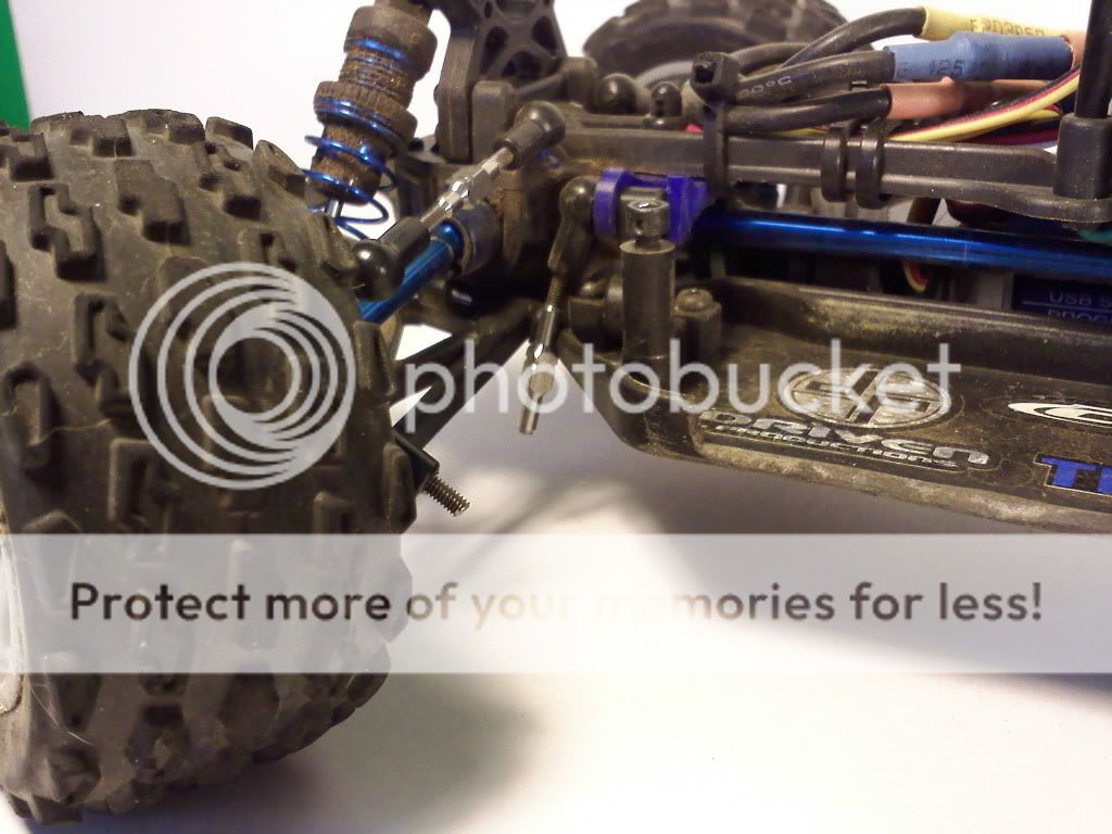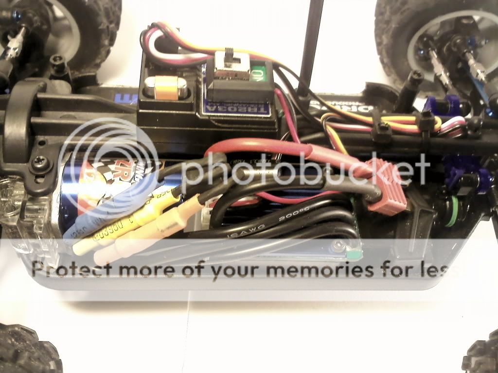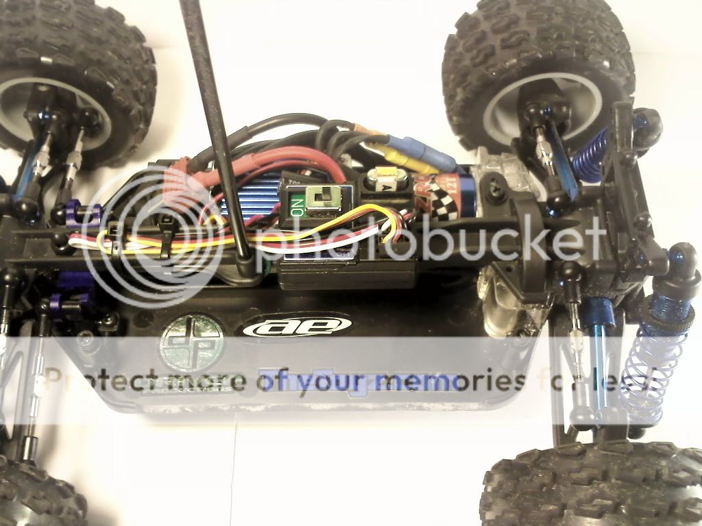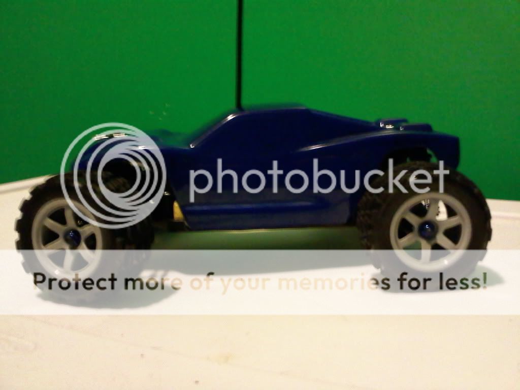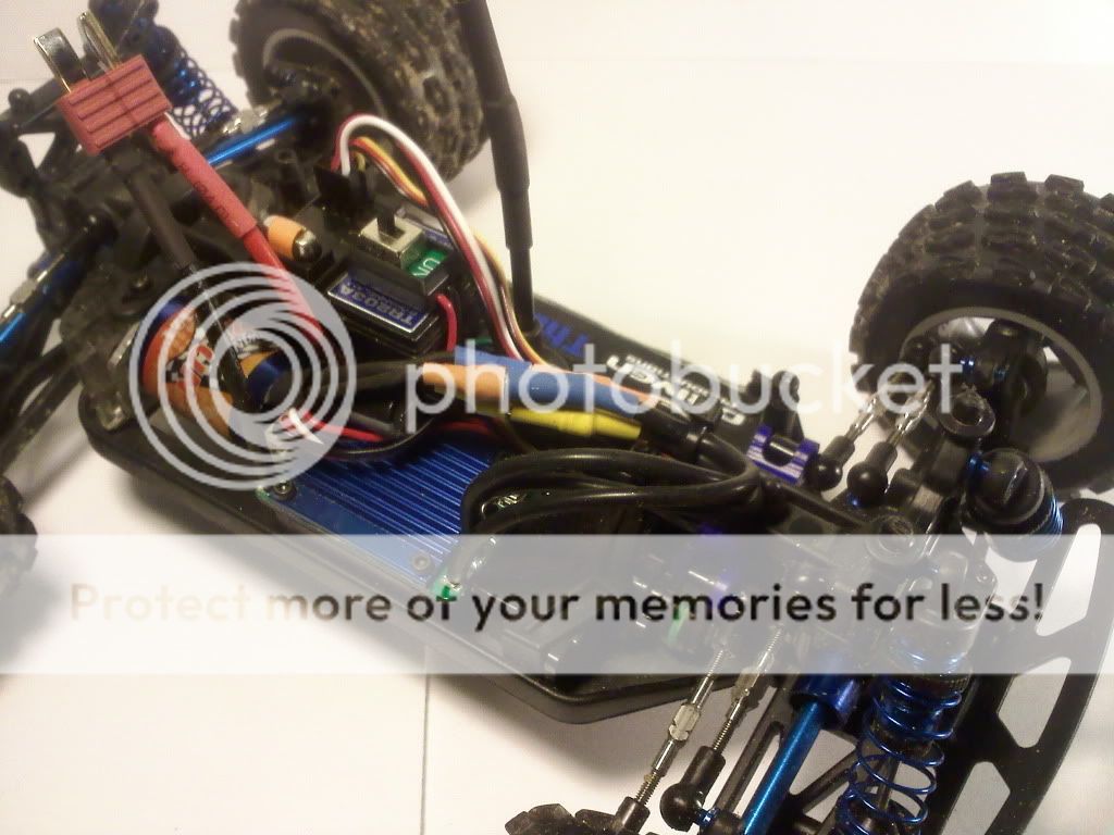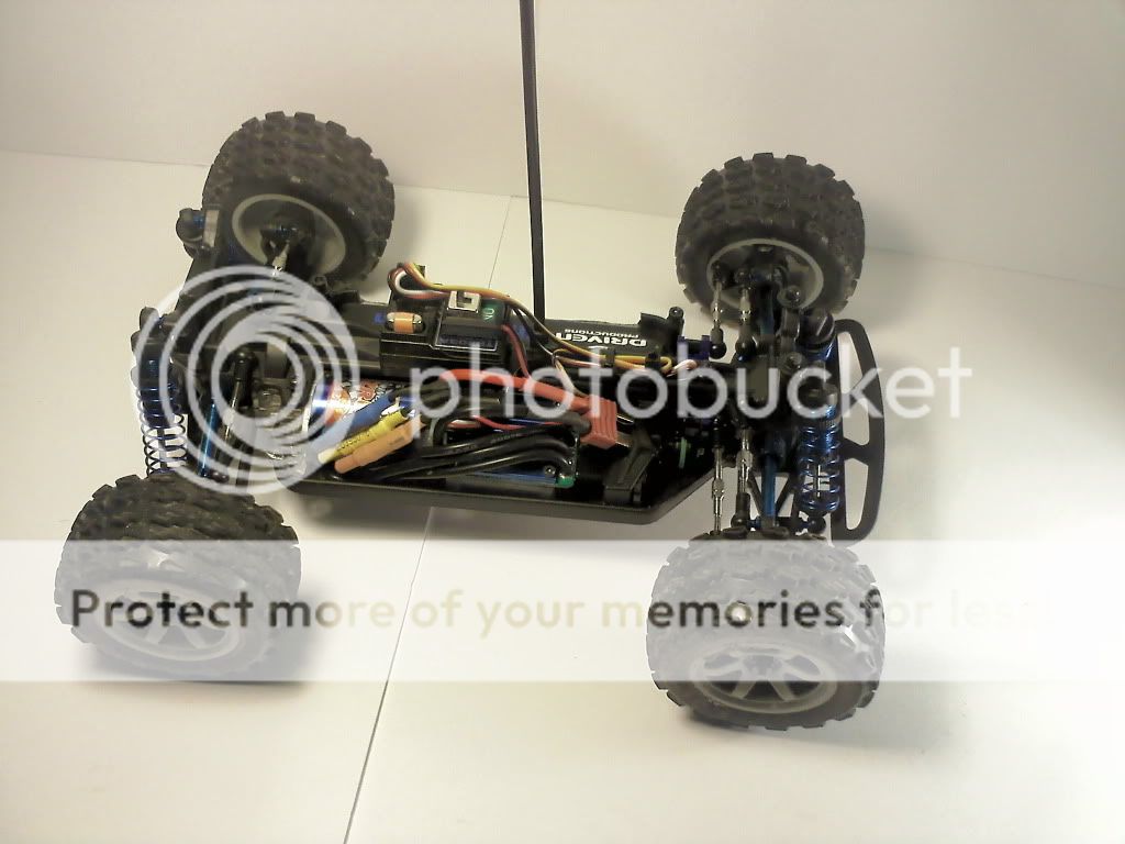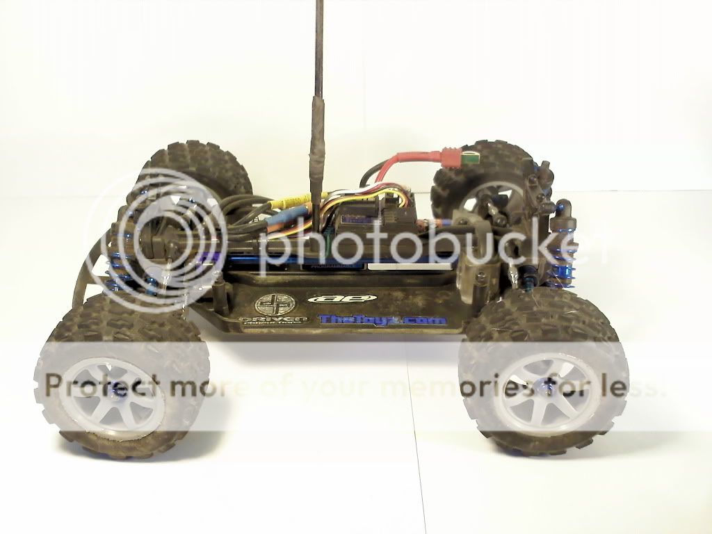 So far the upgrades are: DP Drag Link DP Gear Cover ProPulse DirtHawg Tires RPM Bumper Hitec HS-65HB Mamba 25A ESC and a horrifically painted body Pictures: http://i427.photobucket.com/albums/p...0307091107.jpg http://i427.photobucket.com/albums/p...0314092111.jpg http://i427.photobucket.com/albums/p...11091232-1.jpg http://i427.photobucket.com/albums/p...0091744a-1.jpg http://i427.photobucket.com/albums/p...420091744a.jpg http://i427.photobucket.com/albums/p...0502091829.jpg |