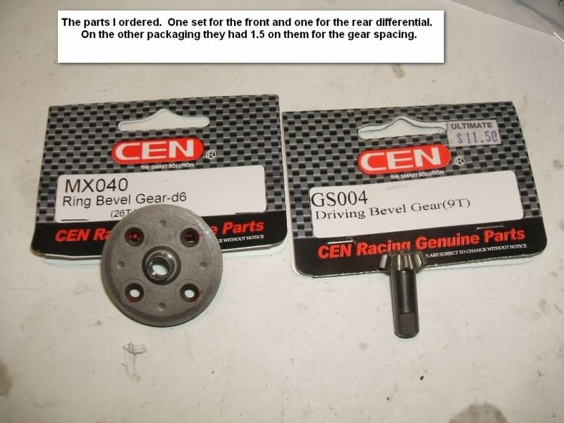 I think the full cen mod is the way to go. Some of it was price, but mostly it was just to see if it would work. I had been messing around with different ring and pinions on the xl diffs. Tried the strr and they didn't work out so was thinking the cens might when I found the link about the guy at SC using them on the flux diffs. If it doesn't I have half the parts needed to do the full cen diff upgrade. The price for the cen diffs on ebay has gotten higher as the popularity of the cen diff mod increased. I was really reluctant to use the red loc-tite. I read of other having problems with the grubs staying screwed in. I don't think they flattened the ends of the grubs though. I flipped a coin and the red loc-tite won. There's enough for the grub to grab a hold of but not like you have a pin going through the beveled gear. I had some problems with them also when I tried the STRR ring and pinion gears. They didn't hold on them either. Found lighter fluid will help loosen your loc-tite if needed and if it doesn't you can thrown in a match and solve the frustration. Plus I am optimistic that I will never need to get in there again. lol |