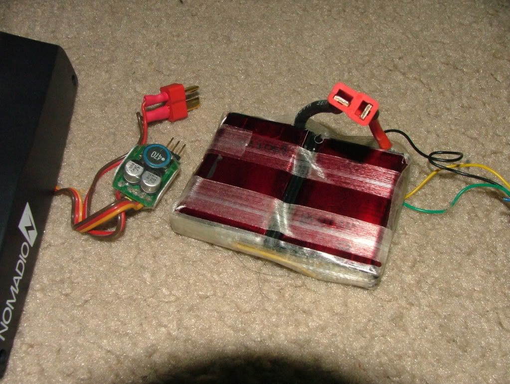 I use little flat lithium ions in my nomadio. I haven't bothered with the airtronics yet. I use a dimension engineering bec to drop it to 5V. Don't feel like burning up my nomadio.