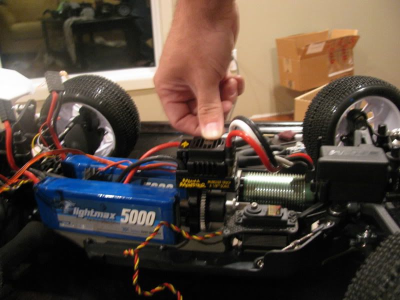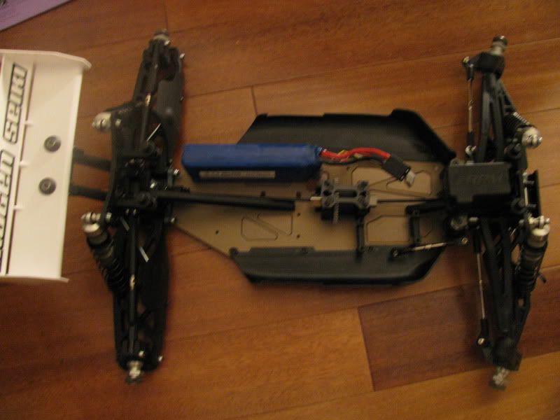 well all of my parts should be n next week.. .im thinking of standing the lipos up on end like in the photo on pack on each side.. motor facing forward and the ESC on top of the center diff or some how on top of the steering survo.. dont want to flip on its side.. but i could.