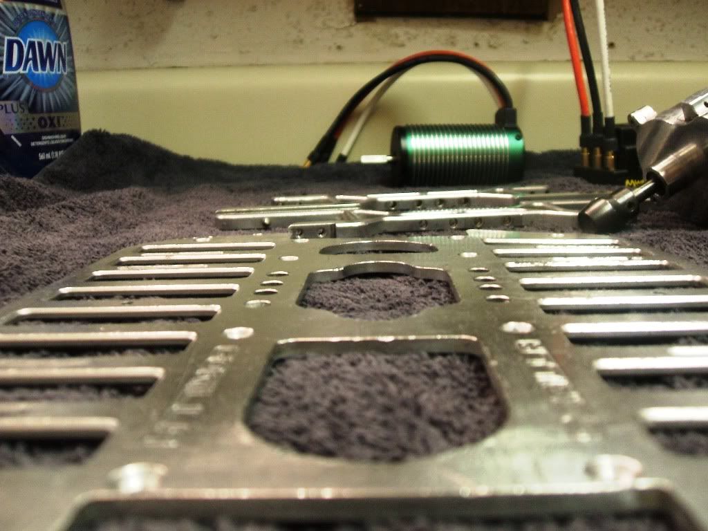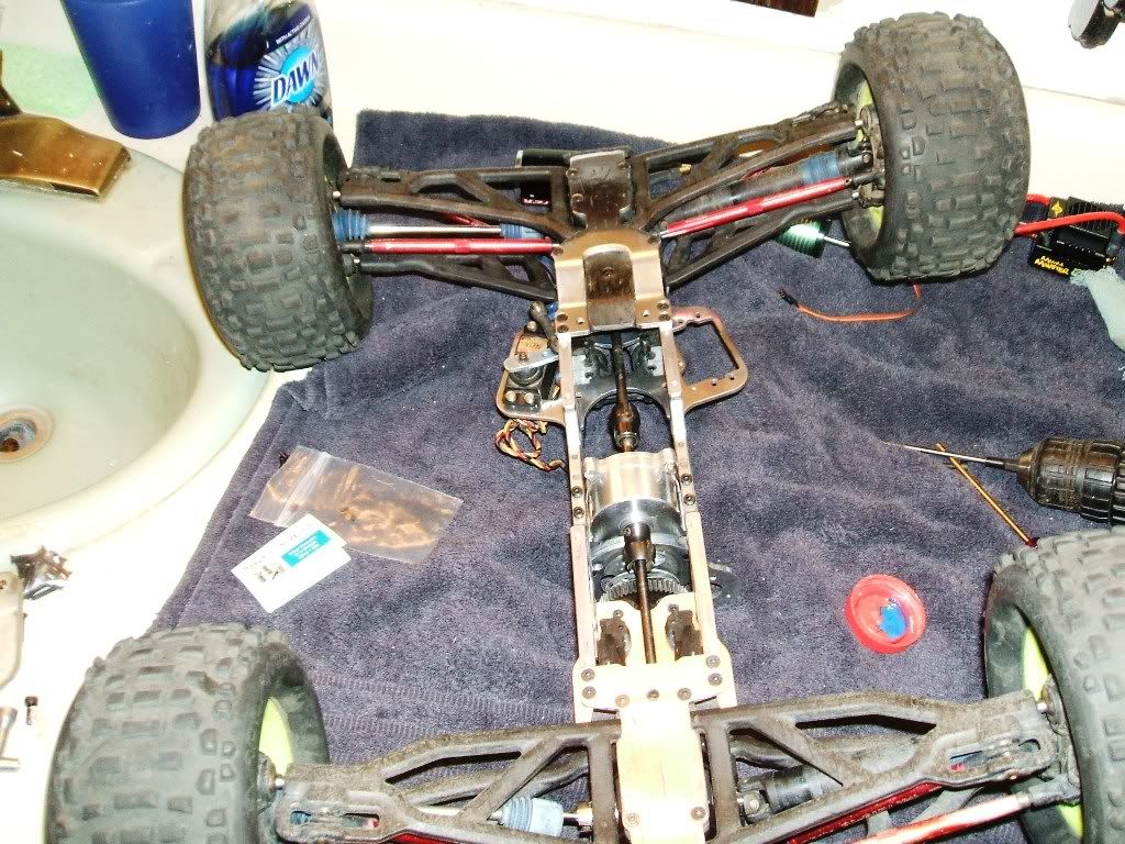 I got it cleaned and back together before it got dark out that day so I got to test out the monstor. Need stronger diffs now. Speaking of, the diff was how this got started but somehow I got the wrong pinion install. The one I put in was a little longer. It was really hard to tell. It made the rear drive line bind up. I had to take it apart three additional times until I noticed the pinion was sticking farther into the rear cup then another I had. It would bind up so bad my first thought was I installed the diffs backwards. The second time I thought maybe I shimmed the pinon too tight, and third time I was wonder just what the f was going on. Time wasn't on my side and nightime was approaching fast. Don't know how the bathroom counter become the spot to clean this up, but I was getting tired of being in there and not sitting down for such great lengths. When I tell people I spent most of my Satuarday in the bathroom, everyone assumed I was sick. Hmmm, calling in sick to work might be in the near future. Use it or loose it........ http://i212.photobucket.com/albums/c...stDSCF8670.jpg http://i212.photobucket.com/albums/c...stDSCF8674.jpg I had to take a lot off of the front skid plate to get most of the scratches out. Some are too deep. Would end up with a 1mm skid plate if I kept going. http://i212.photobucket.com/albums/c...stDSCF8672.jpg http://i212.photobucket.com/albums/c...stDSCF8673.jpg http://i212.photobucket.com/albums/c...stDSCF8682.jpg http://i212.photobucket.com/albums/c...stDSCF8683.jpg http://i212.photobucket.com/albums/c...stDSCF8680.jpg http://i212.photobucket.com/albums/c...stDSCF8685.jpg http://i212.photobucket.com/albums/c...stDSCF8688.jpg http://i212.photobucket.com/albums/c...r2DSCF8689.jpg I was impressed before with the work Shaun did on cleaning his. I have much more respect and appreciation for what an the excellent job he did now. I might have let mine go too long before cleaning or just didn't avoid the rocks well enough. There no taking away the time and dedication he put towards his spit and polish job. So in my book Shaun (where ever you are) you are still the man. I thought it before, I know it now. Thanks for the tips you gave me. Here's a toast to you bud. I miss the late night west coast toasts we use to share. Hope all is well with you and yours. Using the cameras flash gave it a bit more of the glaring reflection I was hoping for. |