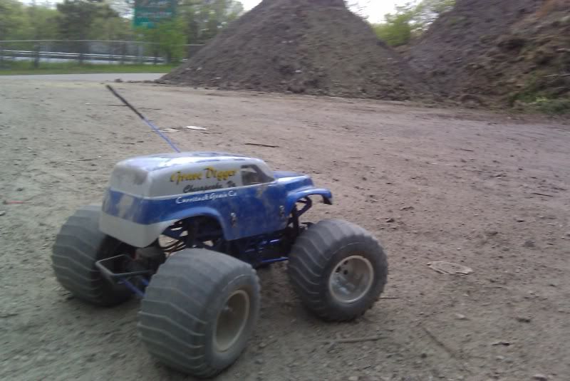 It's a Redcat Groundpounder. It is fairly new, only 10 months old or so, and is super scale to real MTs. What's nice is it has a fully adjustable 4-Link set-up, with solid front and rear axles. I have owned MTs before: Lunchbox, Stampede, T-Maxx, LST2, Revo... And I have to say, this thing gave me wood! Similar to Clod set-ups it has 4-wheel steering, which rules. This is very similar to Clods and TXT's however this thing only weighs 10lbs with battery. Here's the specs: When I bought it used on RCU -Aluminum shock mounts (Crawford) -Low profile motor mount (Crawford) -HR air shocks (I added a bit of shock oil though) -Jumbomaxx tires with RC4WD tractor pull tires (basically pillows) -Aluminum driveshafts (Crawford) -That bad-ass vintage GD body. I did: -VXL System (usually can't stand trx, but it was cheap and waterproof, and it's a basher) -Tad brace mod (securing the transmission so there is no flex to strip spurs) -Mod .1 - 11T Pinion / Spur -Reversed electronics tray -8000 2s lipos I am 3 packs in, and it is freeking amazing! It only goes about 30mph, but I am sure it is because of those huge tires, 11T pinion, and real old crappy maxamps batteries. However, it can pull wheelies at mid throttle. I dialed down the steering throw, because I love the 4-wheel steering. It actually flies very straight and balanced. Sorry for the poor pics, I was trying take photos and drive at the same time. Love to hear what you guys think. http://i255.photobucket.com/albums/h...g?t=1273802327 http://i255.photobucket.com/albums/h...g?t=1273802359 http://i255.photobucket.com/albums/h...g?t=1273802390 http://i255.photobucket.com/albums/h...g?t=1273806957 http://i255.photobucket.com/albums/h...g?t=1273806992 |