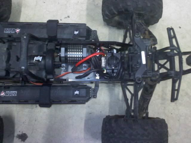 Got the esc mounting figured out, just went with doudle sided tape and a ziptie. still look pretty cool, but i dont know why HPI orders these motors with wires that are 6inches long, it would look a lot cleaner with shorter wires but i suck at soldering so the long wires were tucked down with another ziptie. I need to get an extension for esc because no matter what way i route the wire it will not reach the reciever, only by like a half inch though.