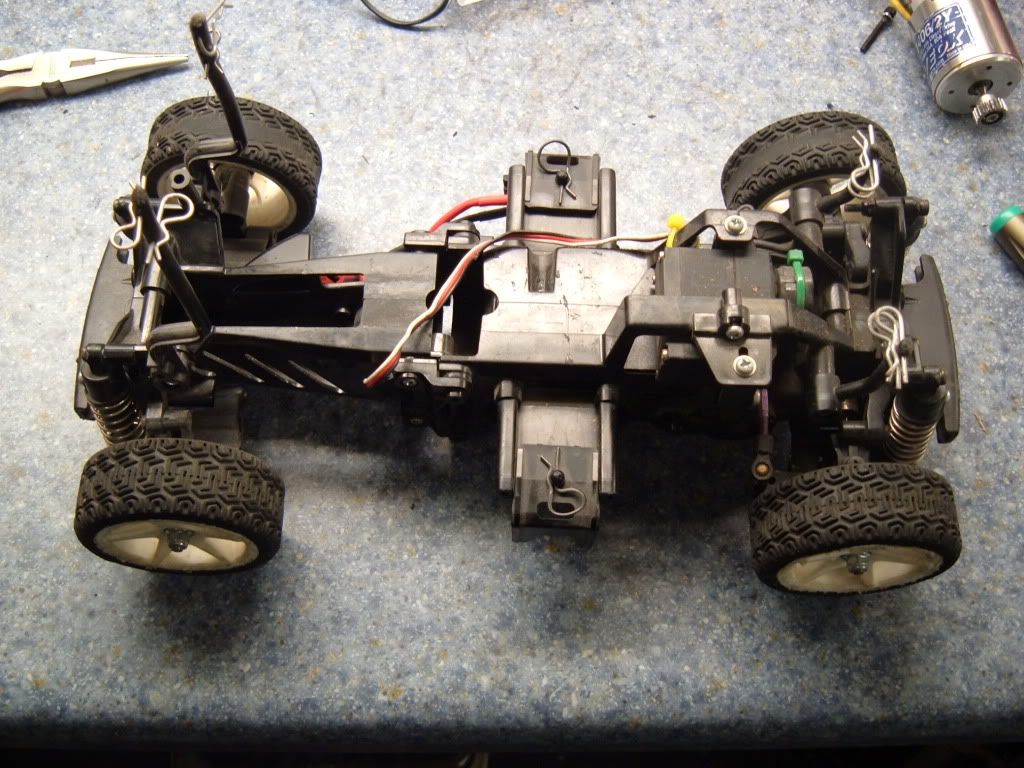 Heres a few finished pics. Ended up with an aveox 27/13 motor, 4700kv. Tiny little mini neu, 4 pole and it pushes this light 2wd over 50 with no issues and no heat. Mated to a MM and I have run 3s and 2s on it. The only 3s pack I had was an older fp 2170mah 25c, not really enough to keep up. But it would spin the tires all the way to over 50mph. Swapped in an orion 3200 20c 2s. Much better, and top speed is not much less than the 3s which must have been dropping volts hard. Currently running FM as I am waiting on my HK order with the 7 buck a piece 2.4ghz rx. I ordered 5. Also waiting on a hobbypartz order for the 2s lipos. May just try running 1 of them, more discharge capability than the 3200 20c. 88amps vs 64. Gotta love the last pic, that body has been thru hell!!! http://i206.photobucket.com/albums/b...p/DSCF4928.jpg http://i206.photobucket.com/albums/b...p/DSCF4929.jpg http://i206.photobucket.com/albums/b...p/DSCF4930.jpg http://i206.photobucket.com/albums/b...p/DSCF4931.jpg |