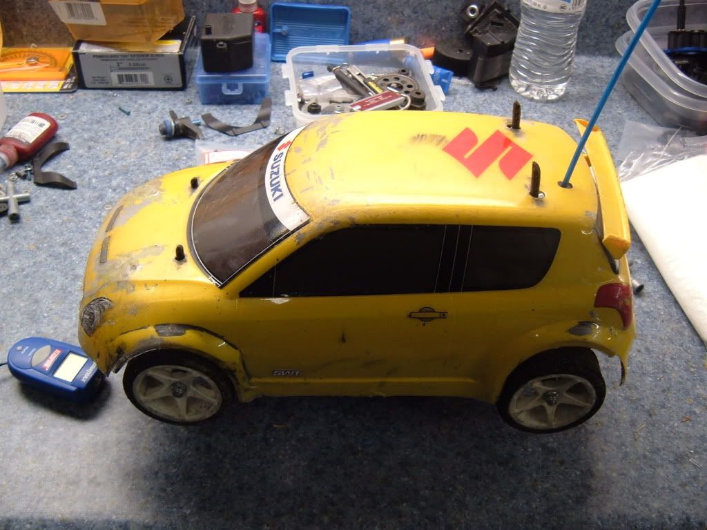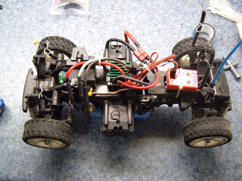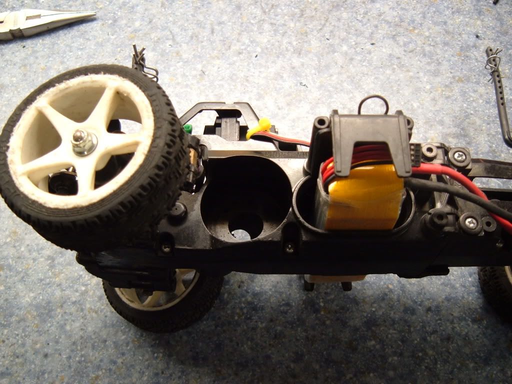 The Tamiay M03 chassis is a sub 10th scale front wheel drive on road car. It has a monocoque style chassi with a transverse battery tray. Has a double reduction trans setup, with a 20t pinion you get 5.8:1 reduction. Pinion adjustment is fixed, you can run a 16t, 18t, or 20t (3 sets of mount holes, no slots). My car is a box stock Suzuki Swift, so it has the chassis extender and is technically a M-03M (M for medium chassis length). Has the friction shocks, stock servo saver, and front driveshafts. It also has the bulletproof gear diff from the tlt. Only upgrades are a green ziptie to firm up the servo saver, and adjustable steering tierods. I have had this car for a few years, and it has had everything from a silver can and a stick pack to a GTB and 3.5t motor. I have never broken anything. We have jumped it, ran it on the roof (lots of fun) and it has beaten more than 1 body into total submission!!! Anyways, just scored a cc 6900 motor and a MM cheap, so it gets a new power source. Since the transverse battery tray is setup for a std oval shaped stick pack, getting most lipos in there is a bitch. I have a orion carbon 3200 2s pack, but I doubt that is good enough for the 6900 kv motor. So enter hobbypartz, they have 2200mah 2s 40c lipos on sale for 12.50 shipped. I bought 2 of them. One will go in the tray area (it is narrower than a std lipo) and the other will go on the back chassis longways. Will wire them in parallel for 4400mah 40c 2s. http://www.hobbypartz.com/77p-sl2200-2s1p-40c-2222.html Should do around 50mph, and will be alot of fun. I even scored a new body for it!!! Here are a few pics as it stands: http://i206.photobucket.com/albums/b...p/DSCF4918.jpg http://i206.photobucket.com/albums/b...p/DSCF4919.jpg |