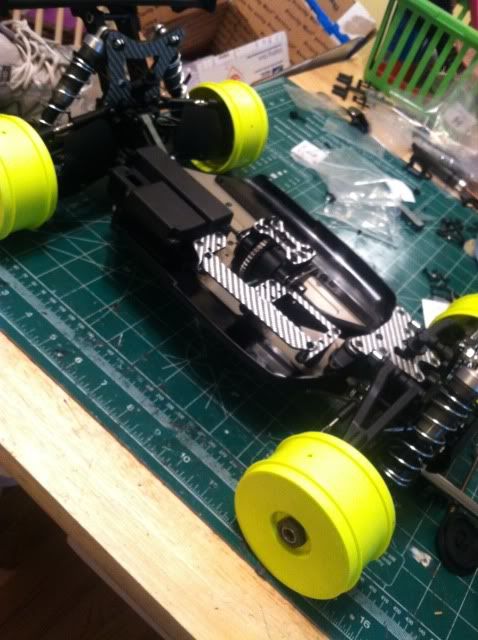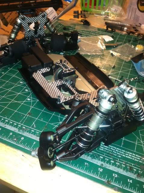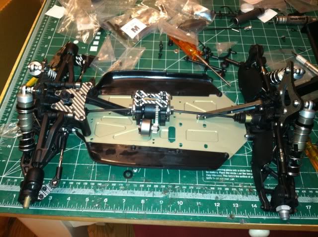 front and rear difs built and the arms all mounted up. http://i116.photobucket.com/albums/o...0/photo1-3.jpg the center and brakes all mounted up with the shocks bolted up with the tekno clutch set up in its location. http://i116.photobucket.com/albums/o...0/photo2-3.jpg the radio and servo tray mocked into place. http://i116.photobucket.com/albums/o...0/photo1-4.jpg its a roller! Well, with just wheels. Cant decide on what tires to run. Maybe badlands or some multi purpose panther tires. http://i116.photobucket.com/albums/o...0/photo5-1.jpg |