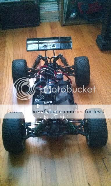 WOW! Hey guys thanks for all the discussion! I walked in to SRIhobbies today. Its a nice shop with lots of 1/8th scale stuff. They have an xray x9e buggy for sale its used and belongs to a racer at the track. $225. Its real nice and has a lot of hop ups. The best thing is that I was able to open a pack of truggy tires and put them on the buggy. The suspension bottoms out successfully and has a mm or two to spare. I'm quite happy with this discovery! The other cool thing about this is that it has a Rc-Monster battery/ESC tray. It has metric screws. Which is a plus for me. most of which are 12.9. The only yet serious downfall is that the battery tray seems very small. like 140 by 50. I need 163 by 52. I don't know. I could put a bigger tray on it. I don't want to buy any more batteries right now. I just want to be able to use my big ones.