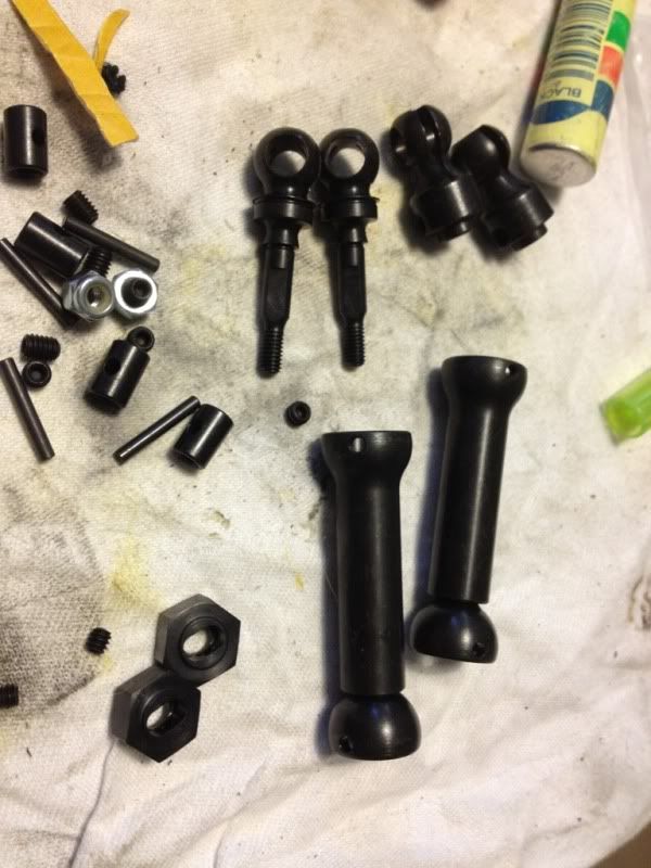 http://i123.photobucket.com/albums/o...433796B8F5.jpg Ok guys, been working real hard to just test on the floor at home, not glued the rubber yet... ----------------- To do:* Body mount, custom ones Glue tires Paint lid Antenna mount ------------------ http://i123.photobucket.com/albums/o...65C6C63580.jpg http://i123.photobucket.com/albums/o...65EC5069ED.jpg http://i123.photobucket.com/albums/o...66006B3DEA.jpg Shaft mod :) http://i123.photobucket.com/albums/o...6616B2B927.jpg Yes!!! New MIPs and the inc HEX* http://i123.photobucket.com/albums/o...8065E56552.jpg http://i123.photobucket.com/albums/o...7ED4E1D135.jpg Rear and red springs http://i123.photobucket.com/albums/o...82D6153FEA.jpg. Front, they are beeefy* http://i123.photobucket.com/albums/o...82F3642977.jpg |