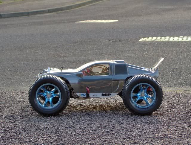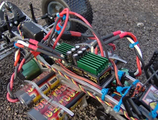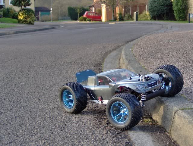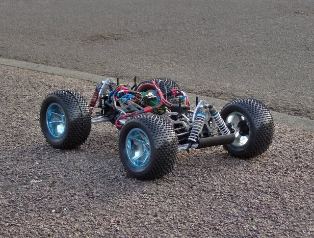 Some of you lot might remember when I posted about my Wild Dagger called Cold Fusion a few times quite a while back (I was harping on about going brushless, etc). Well a lot of time has passed, a lot of work done, and seeing as I've learnt so much from this place I thought I'd post about the finished item.:018: Here she is. I've literally just finished installing the electronics, and I'm absolutely busting to give her a trial run! http://img.photobucket.com/albums/v6...r/HPIM1296.jpg http://img.photobucket.com/albums/v6...r/HPIM1297.jpg http://img.photobucket.com/albums/v6...r/HPIM1302.jpg http://img.photobucket.com/albums/v6...r/HPIM1304.jpg http://img.photobucket.com/albums/v6...r/HPIM1307.jpg http://img.photobucket.com/albums/v6...r/HPIM1308.jpg http://img.photobucket.com/albums/v6...r/HPIM1309.jpg I won't go through the list of modifications right now as it's pretty huge, but it's powered by a pair of Mamba 5700 ESCs and motors. These are fed from two 8-cell Elite 4500 packs wired in parallel and then split to both motors...and WOW does it kick out some power! I haven't run it yet but I did do a quick throttle test with the wheels of the ground and crikey...I know you guys are all used to this, but the tyres were turning into pizza-cutters by 50% throttle lol!:026: The truck as a whole is designed to be able to compete as a racer (even though it fits no official classes); handling has been my main focus and I've done all I can to make it as good as I can. I know it won't match a race-bred truggy but I'd like to think it has at least a fighting chance, lol. Hopefully I'll be able to take the truck out for it's first run tomorrow, and a friend has volunteered to video it for me...so I'll be posting that on here. According to several speed calcs, it should have a top speed of around 55mph so I'm pretty scared to be honest! I have almost all the settings on the Mambas turned right down (with punch control at 100%) to help spare the drivetrain, so hopefully there won't be any mechancial issues. Wish me luck! Thanks for looking, and thanks for all the help you lot have given me over the years. I've not posted much but I do lurk, and you've all been massively helpful.:018: |