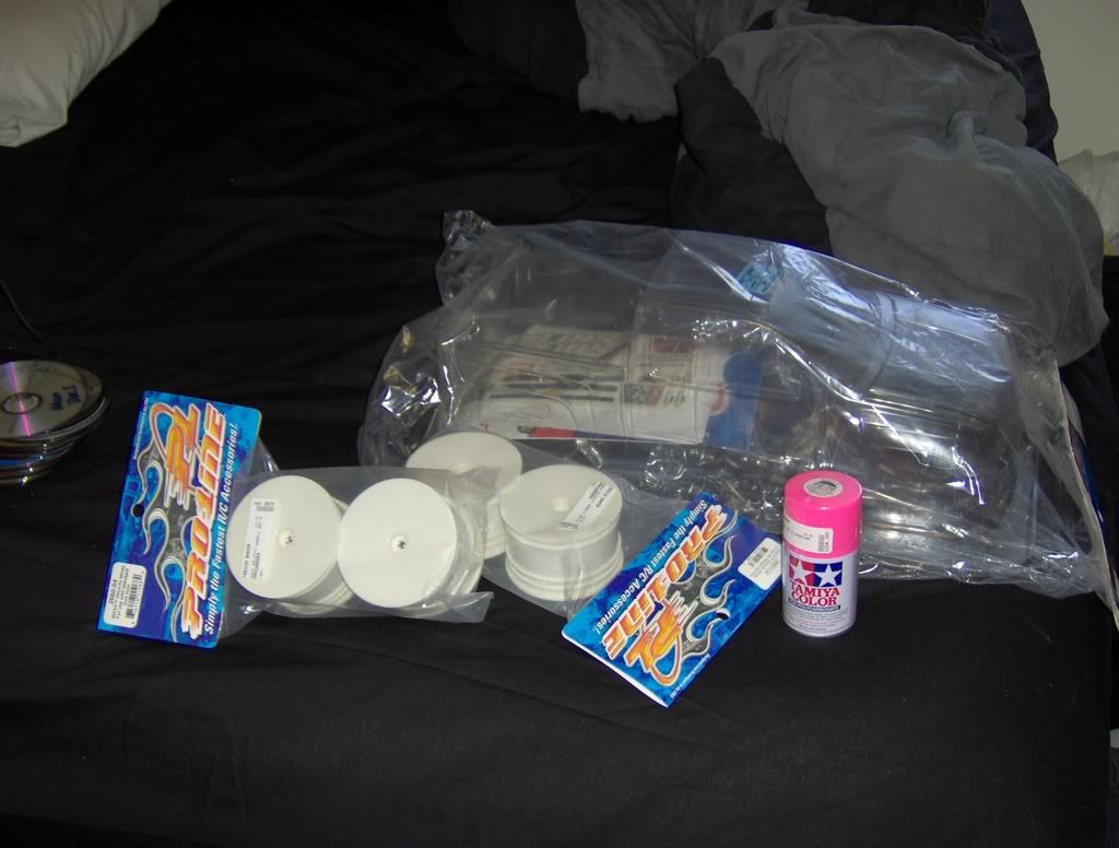 First, the pile of goodies. I forgot to get the rest of the paint at the hobby shop. She was with me and it was hard enough to distract her and buy all the stuff, haha. Anyway, here's the new stuff: '07 ProLine Chevy Silverado, PL Velos (gonna mount the Sportraxx on there), Tamiya Pink Paint, and pink shock socks- http://img.photobucket.com/albums/v2...o/HPIM0933.jpg http://img.photobucket.com/albums/v2...shocksocks.jpg Got the front driveshaft finished- http://img.photobucket.com/albums/v2...ishedshaft.jpg Here it is mounted- http://img.photobucket.com/albums/v2...o/HPIM0940.jpg Servo mocked up in it's position, only using one in this build. Right now it's a z650m. Gonna upgrade to a 358 or a 357 later- http://img.photobucket.com/albums/v2...o/HPIM0942.jpg The poor E-Maxx chassis giving the ultimate sacrifice :( http://img.photobucket.com/albums/v2...o/HPIM0944.jpg Start of the surgery- http://img.photobucket.com/albums/v2...o/HPIM0945.jpg Other side- http://img.photobucket.com/albums/v2...o/HPIM0946.jpg Final major trimming- http://img.photobucket.com/albums/v2...o/HPIM0947.jpg Finished up, cleaned, ready to go on- http://img.photobucket.com/albums/v2...o/HPIM0948.jpg |