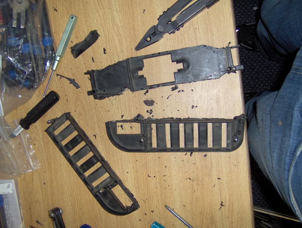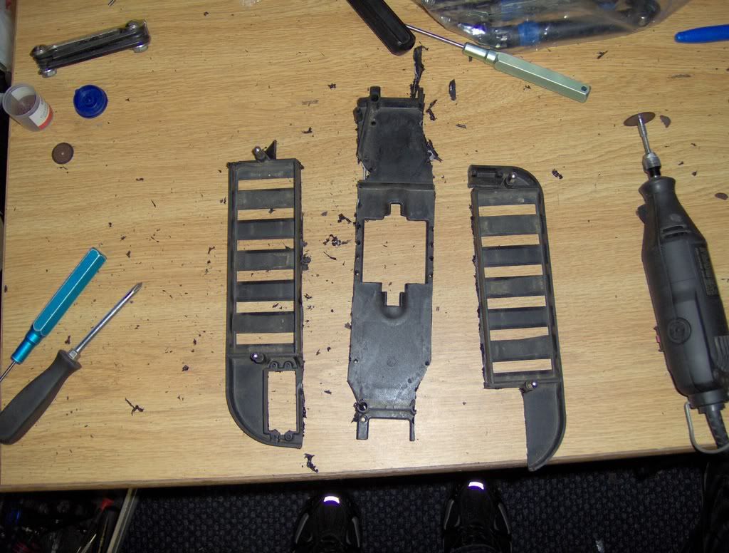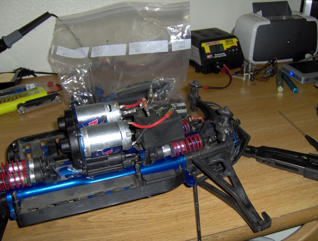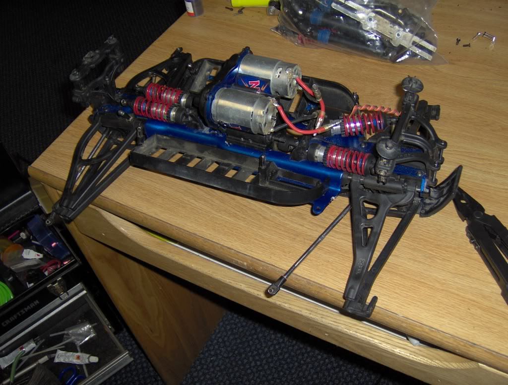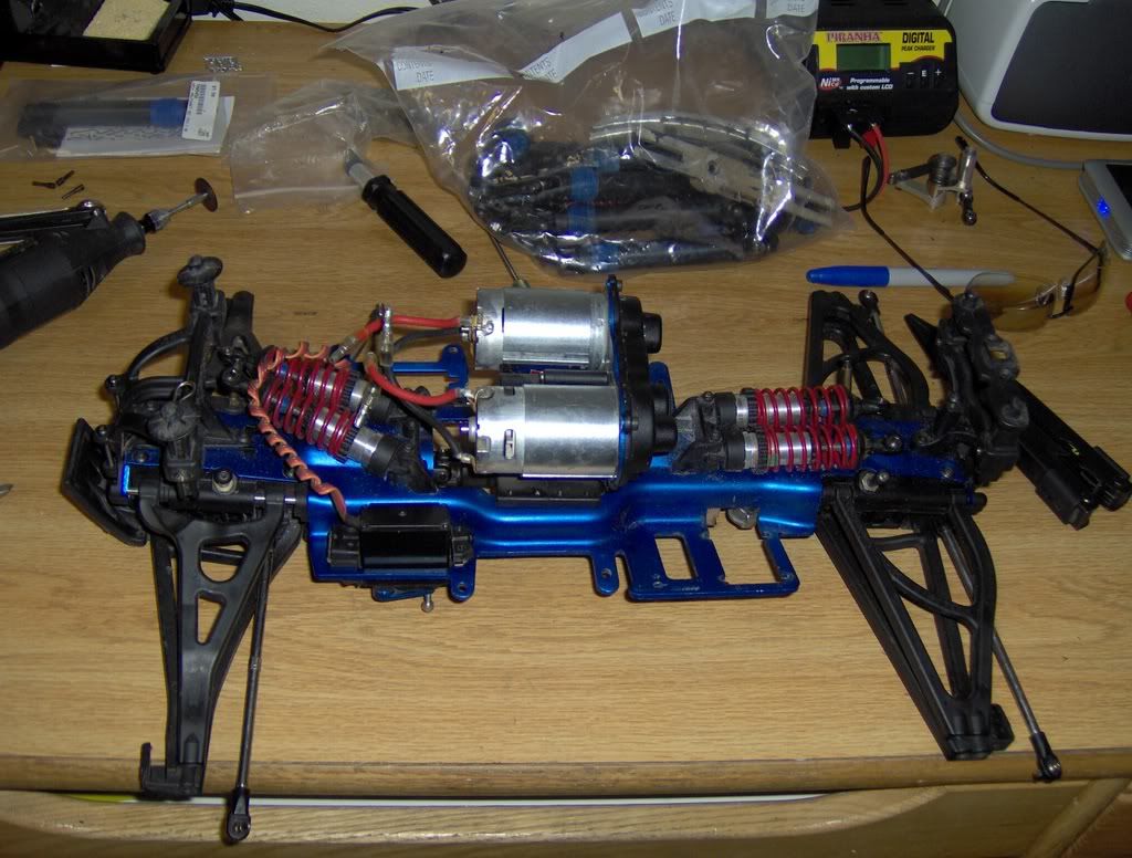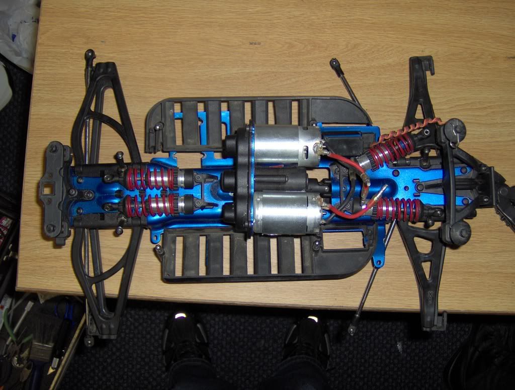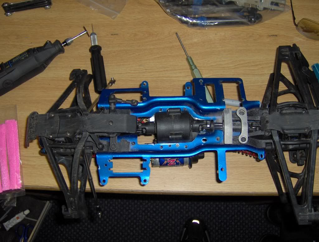 copy cat...lol the one thing I see that you cut off on the one battery holder is the rear part this way you can use it to put a screw in to hold it but other than that looks good, oh and don't forget to flip your diffs this way when you get it going it will run the right way